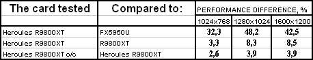 | Hercules 3D Prophet 9800 XT 256MB | Reference card ATI RADEON 9800 XT |