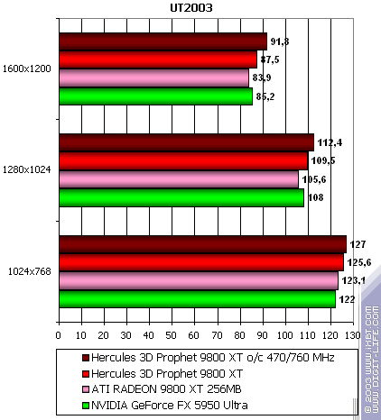 - Обзор Hercules 3D Prophet 9700 Pro 128MB  производительность нового драйвера CATALYST 2.3 в 3DMark2001 SE, бенчмарки Unreal Tournament 2003 DEMO final release