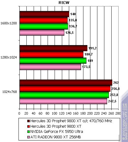 - Return to Castle Wolfenstein (MultiPlayer) (id Software/Activision)  OpenGL, мультитекстурирование, ixbt0703-demo, настройки тестирования  все на максимально возможном уровне, S3TC OFF, конфигурации можно скачать тут