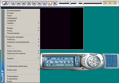 Сначала устанавливался PowerDVD XP 4.0, а затем ставился патч, обновляющий проигрыватель до внутренней версии 1811. С патчем поставилась и русификация, причём очень качественная. :-) Интерфейс очень хорошо продуман, удобно сделана выезжающая панель (на рисунке она находится вверху, её можно переместить к любому краю экрана), на ней гибко настраиваются кнопки, имеется возможность проигрывания скопированного на жёсткий диск DVD и различных типов мультимедиа файлов. Имеется возможность выбора альтернативных "скинов", но стандартный интерфейс, вероятно, понравится всем.