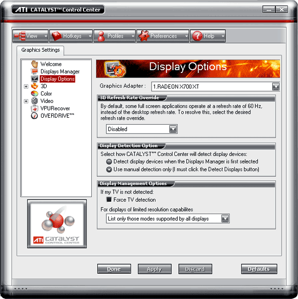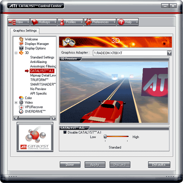 Как мы видим, к анонсу RADEON X700, компания ATI приготовила и новую версию комплекта драйверов. Изюминкой его является CATALYST Control Center, впрочем, эта утилита официально вышла в свет раньше вместе с 4.9. Но почему именно на этой программе делается акцент в этом материале? Ответ прост: только через CCC мы можем воспользоваться новыми возможностями, такими как регулировка оптимизациями в 3D.