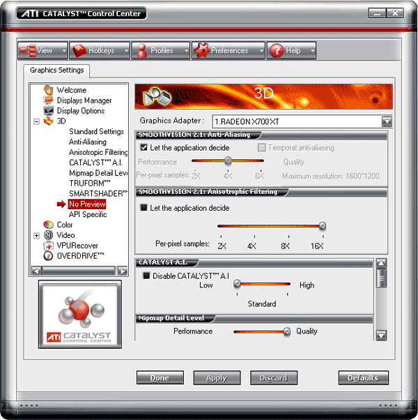 Ниже в разделе анализа скорости мы приведем результаты включения всех трех режимов на примере X700XT с точки зрения производительности. Качественный аспект разберем в следующем материале.