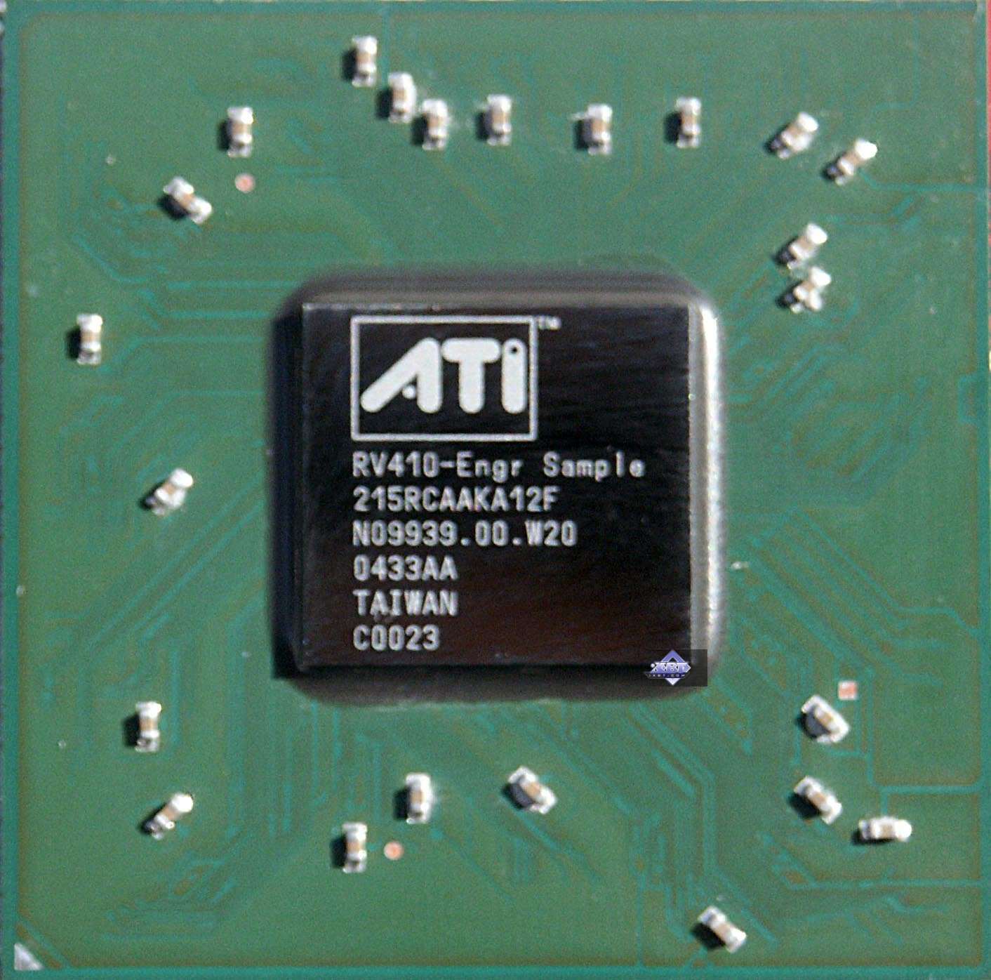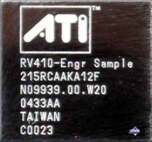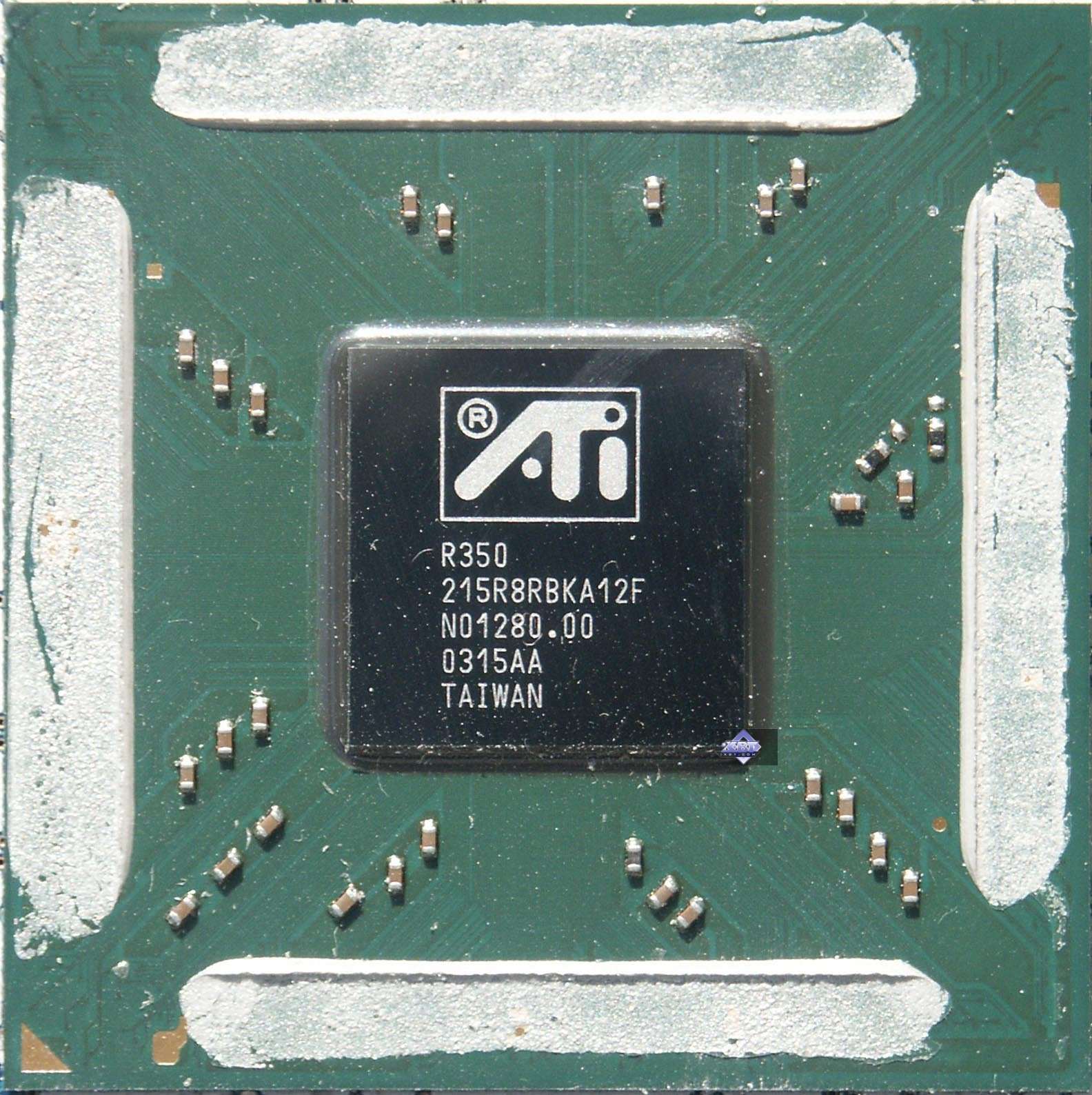 Раз кулер снимали, то значит и кристалл видели. Давайте сравним размеры ядер RV410 и R350. Почему именно R350? Потому что этот чип владеет точно также 8-ю пиксельными конвейерами, к тому же вершинных у него меньше в 2 раза. При этом технология его производства — 0.15 микрон, когда как RV410 изготовлен уже по 0.11 мкм техпроцессу.