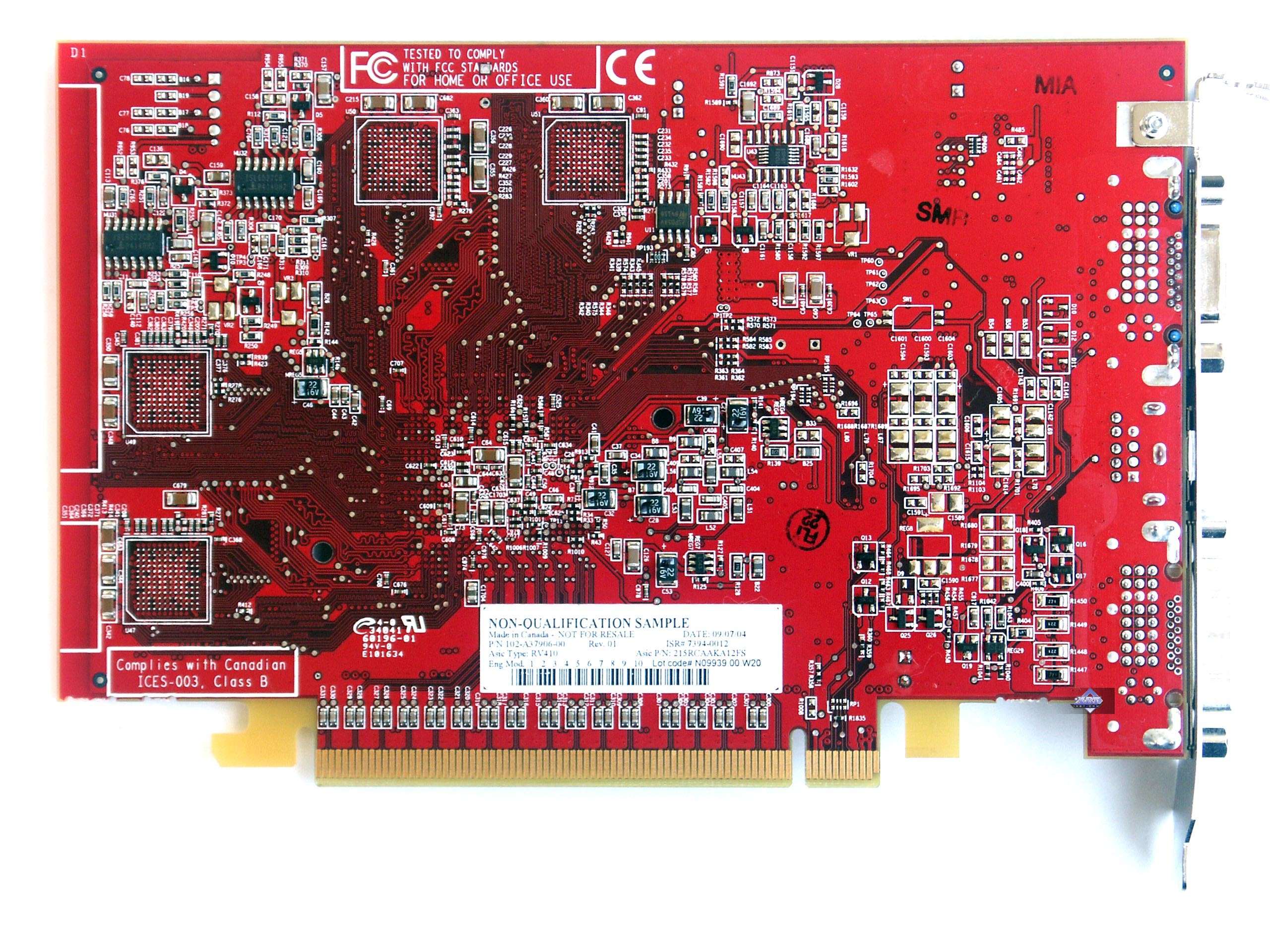 Мы видим, что по дизайну продукт более близок к X600XT, только в отличие от него, X700XT имеет посадочные места на обороте PCB для получения 256-мегабайтного решения. На плате точно также имеется посадочное место для монтажа RAGE Theater (VIVO).
