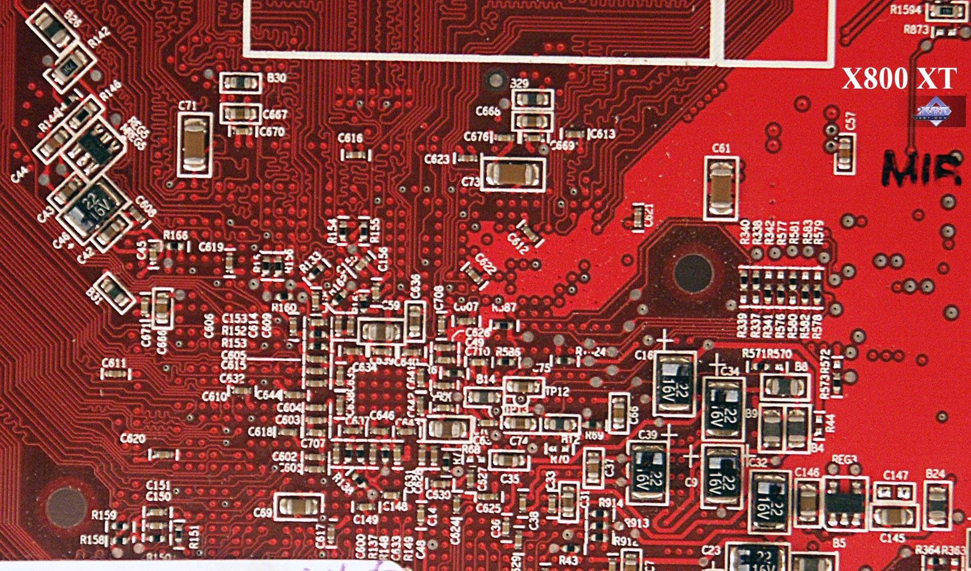 Как мы видим, различия лишь в наличии (отсутствии) элементной базы, сопровождающей ATI RAGE THEATER, который есть на X800 XT, и его же нет на X800 PRO.