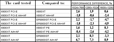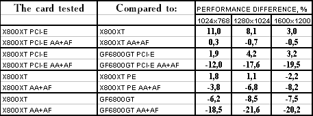 - Sapphire Atlantis RADEON X800 XT PCI-E против Sapphire Atlantis RADEON X800 XT AGP примерное равенство.