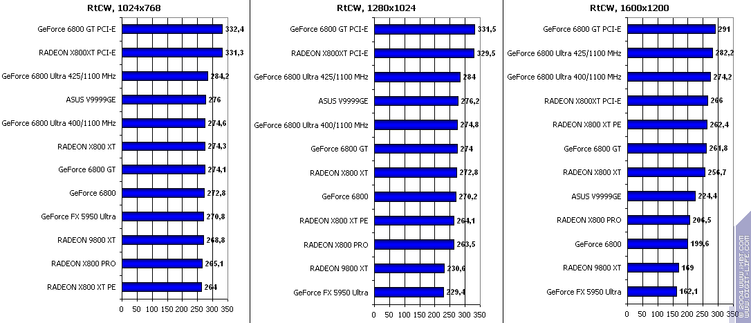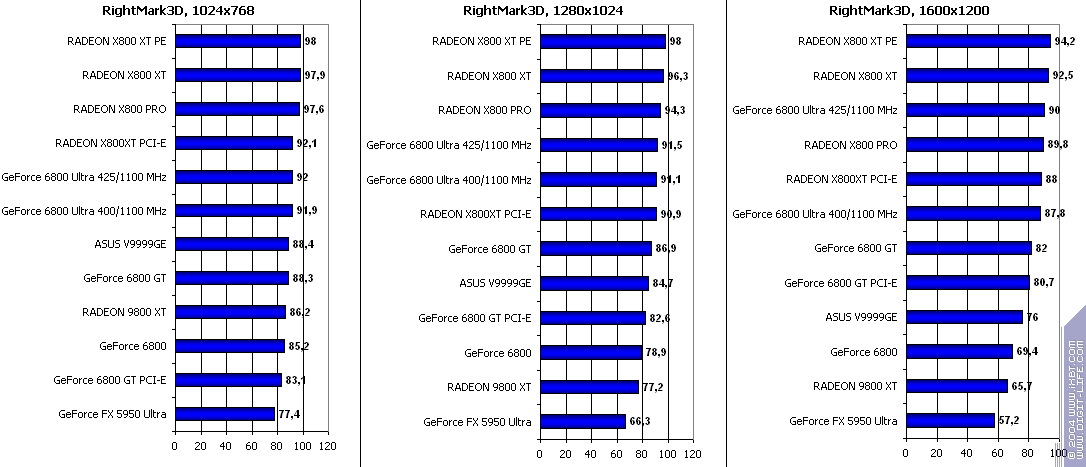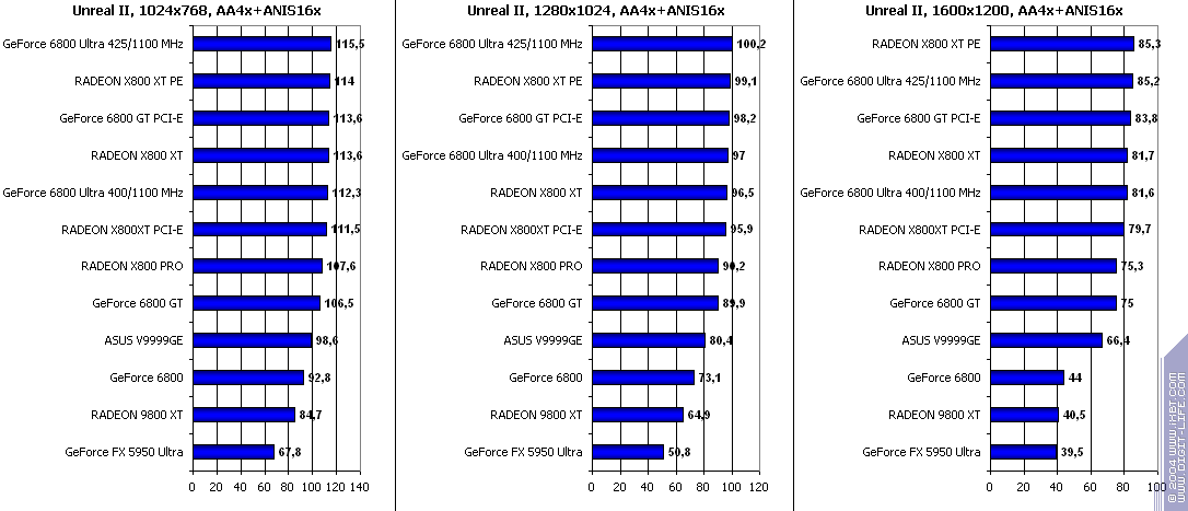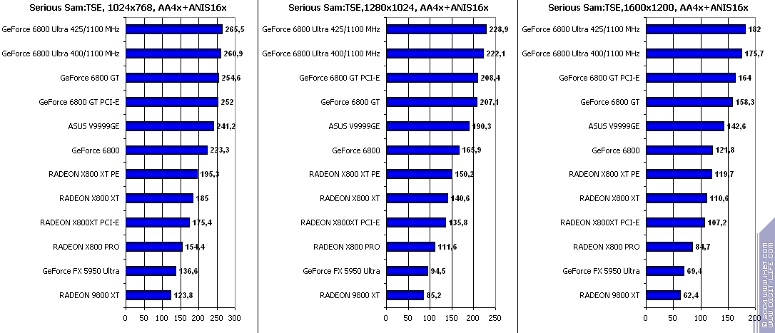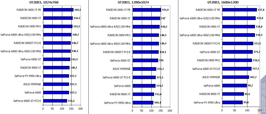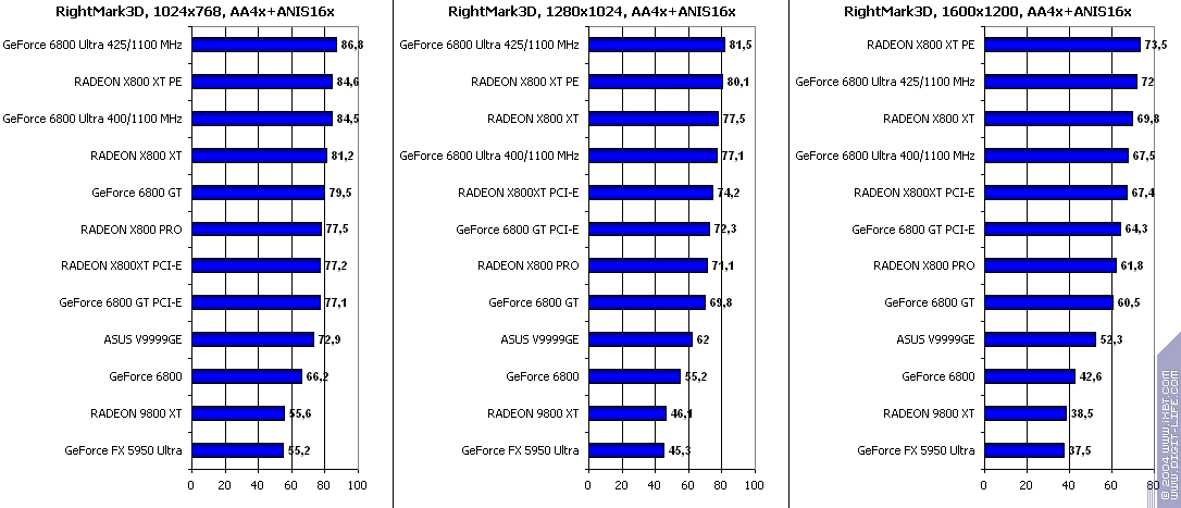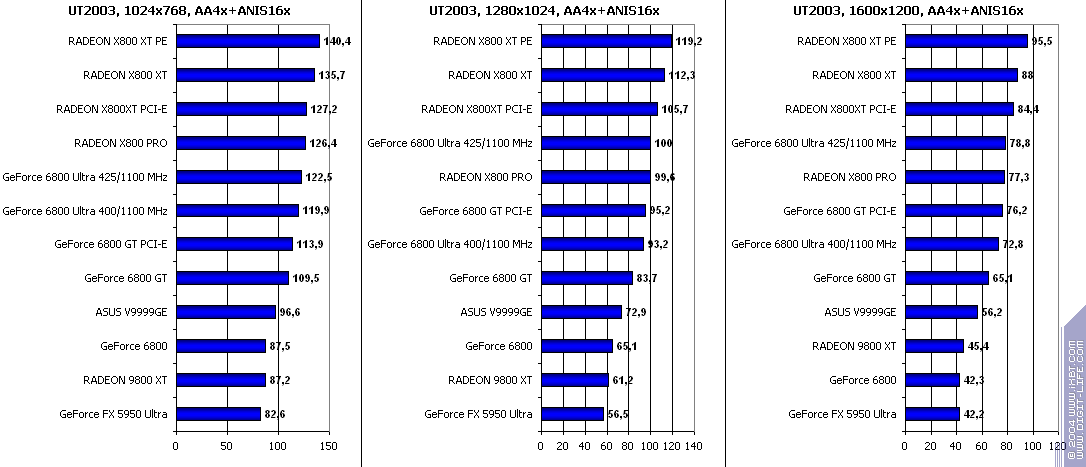 - Sapphire Atlantis RADEON X800 XT против NVIDIA GeForce 6800GT AGP аналогично.