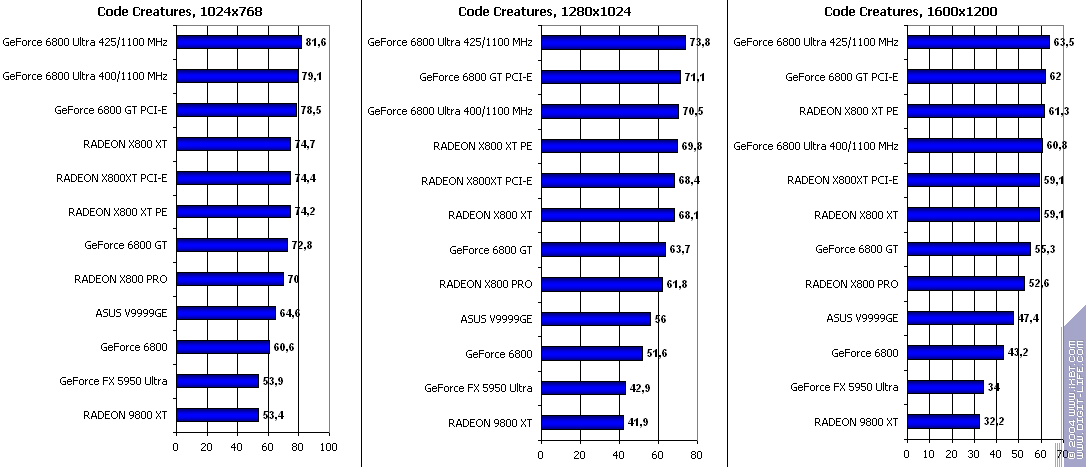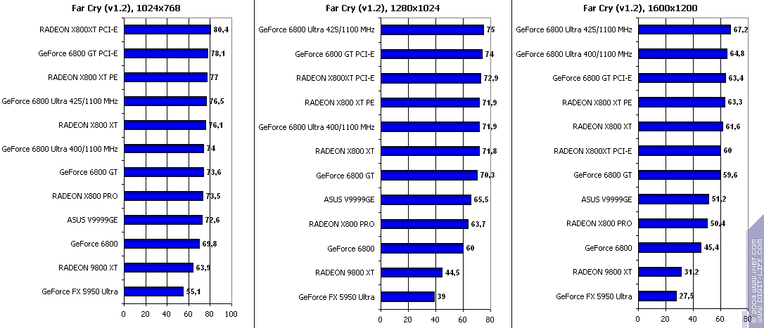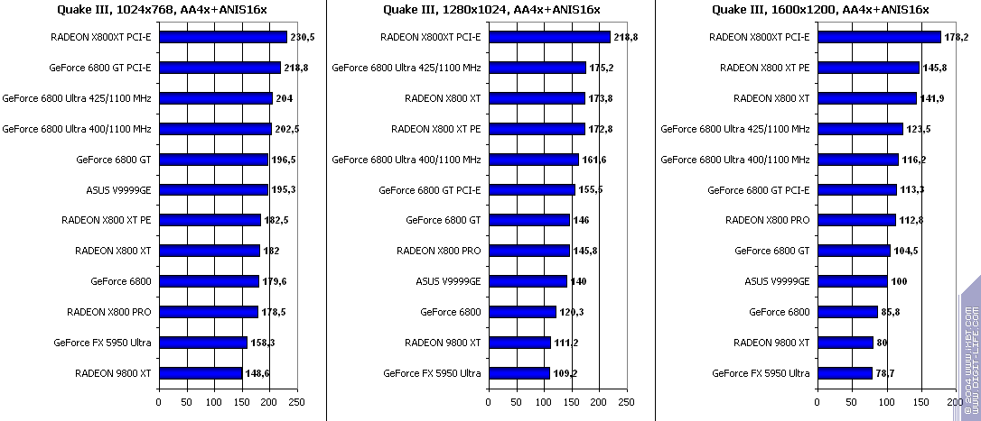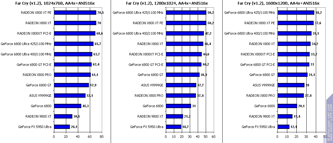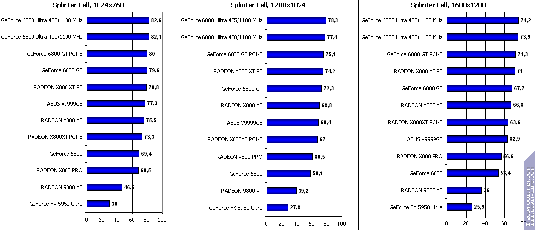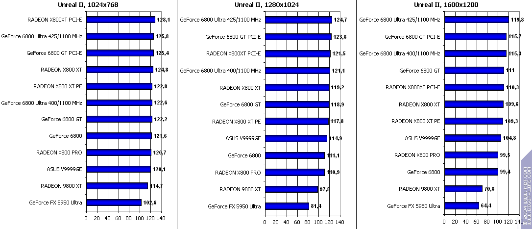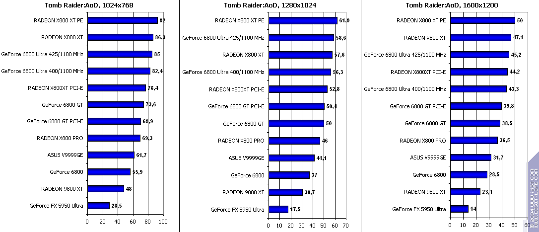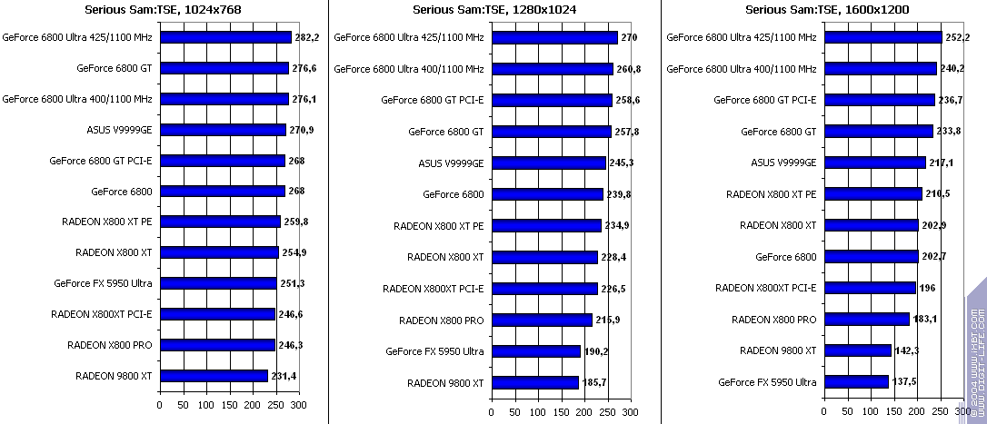 - Sapphire Atlantis RADEON X800 XT против NVIDIA GeForce 6800GT AGP аналогично.