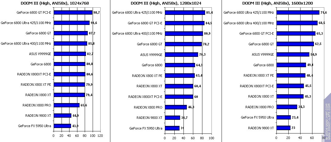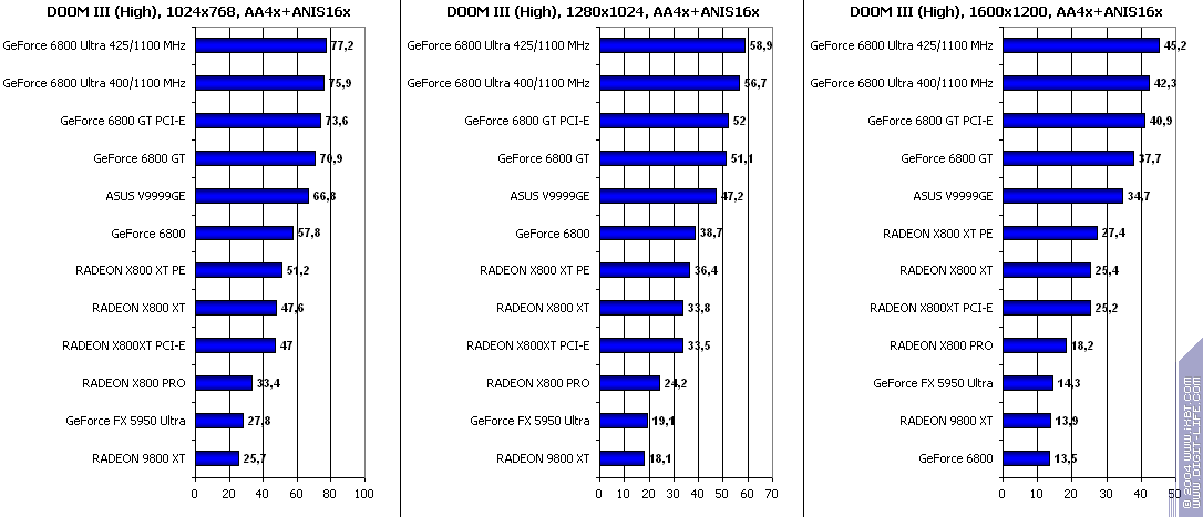 - Краткий отчет об оперативном тестировании современных 3D-карт в DOOM III (X800PRO/XT, GF6800/GT/Ultra, 9800XT/5950U)