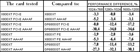 - Sapphire Atlantis RADEON X800 XT PCI-E против Sapphire Atlantis RADEON X800 XT AGP сильный проигрыш! Вероятно, виноваты снова драйверы.