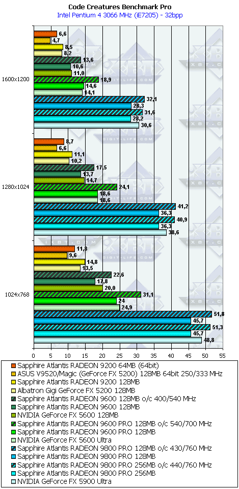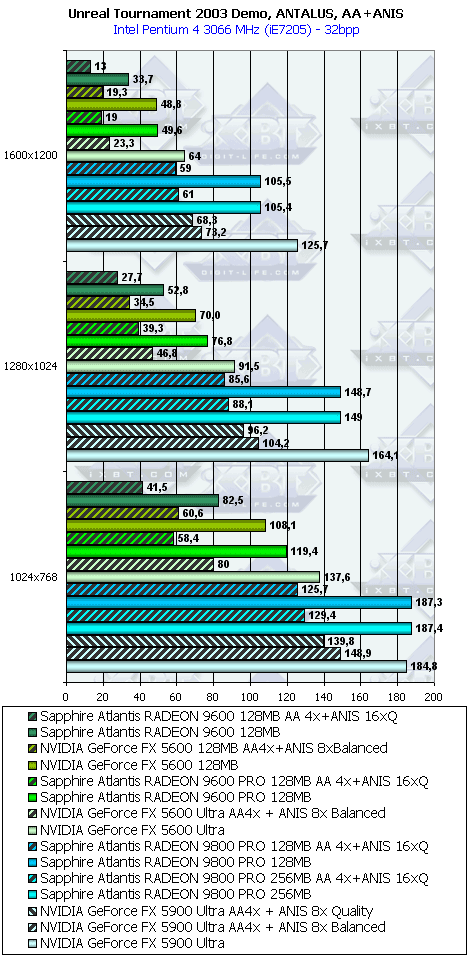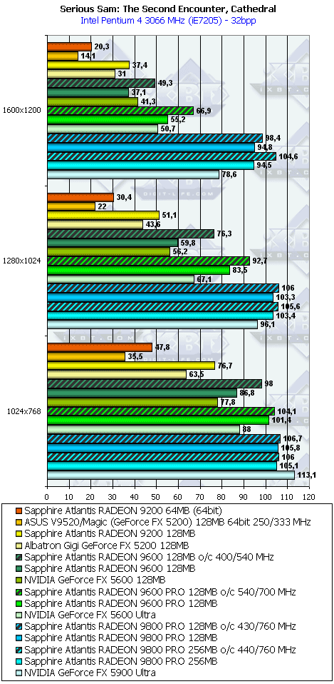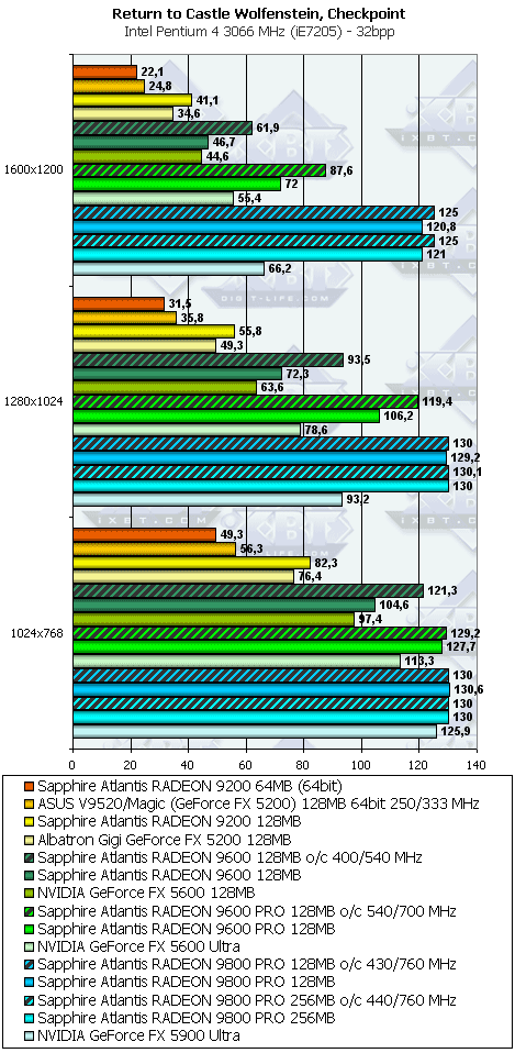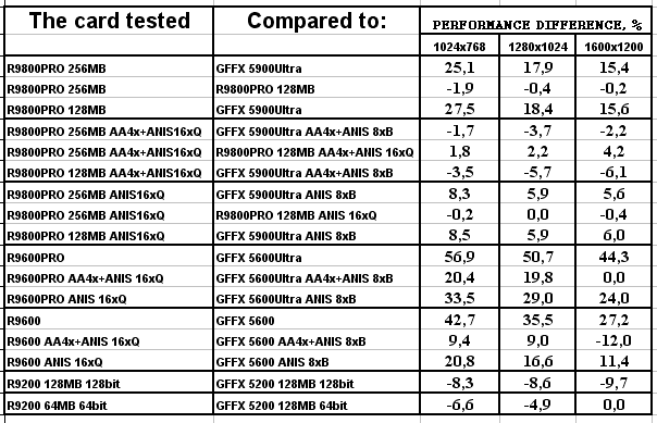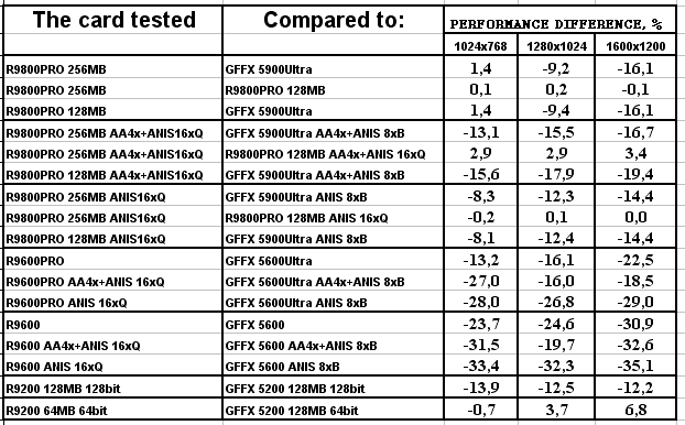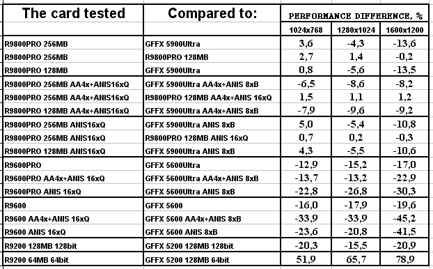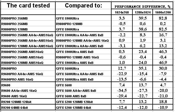 Думаю, что даже нет смысла комментировать различие между 256- и 128-мегабайтными RADEON 9800 PRO. А вот победу над