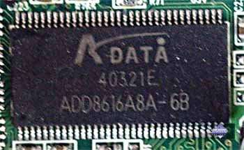 | Карта имеет интерфейс PCI, 64 МБ памяти DDR SDRAM, размещенной в 4-х микросхемах на лицевой и оборотной сторонах PCB. Микросхемы памяти A-Data. Время выборки у микросхем памяти 4 ns, что соответствует частоте работы 250 (500) МГц, память работает на частоте 200 (400) МГц. Частота работы GPU 250 MHz. Подчеркну, что шина обмена с памятью у карты64bit!!! Как мы видим, 64 мегабайта получились за счет отсечения половины микросхем памяти (пустые места на PCB), каждая микросхема16 битная, в сумме64бит. | ![]() |