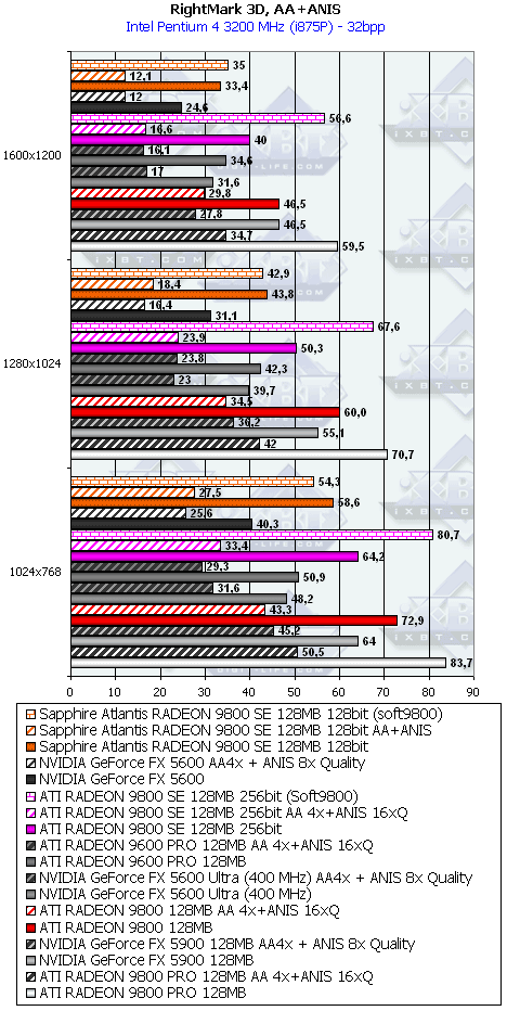 RADEON 9800 PRO Lite все также чуть отстает от обычного RADEON 9800 PRO. А что касается сравнения с GeForce FX 5900, то в тяжелых режимах за счет анизотропии продукт ATI берет верх.
