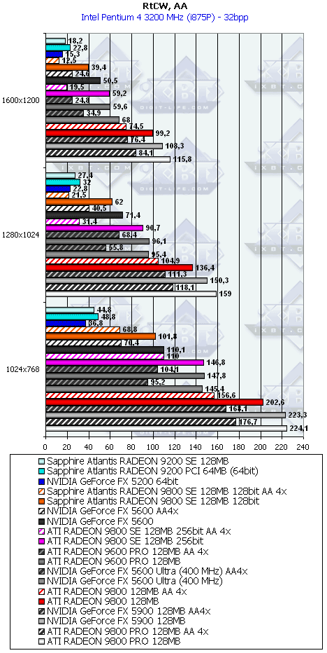 - Return to Castle Wolfenstein (MultiPlayer) (id Software/Activision) OpenGL, мультитекстурирование, ixbt0703-demo, настройки тестирования все на максимально возможном уровне, S3TC OFF, конфигурации можно скачать тут