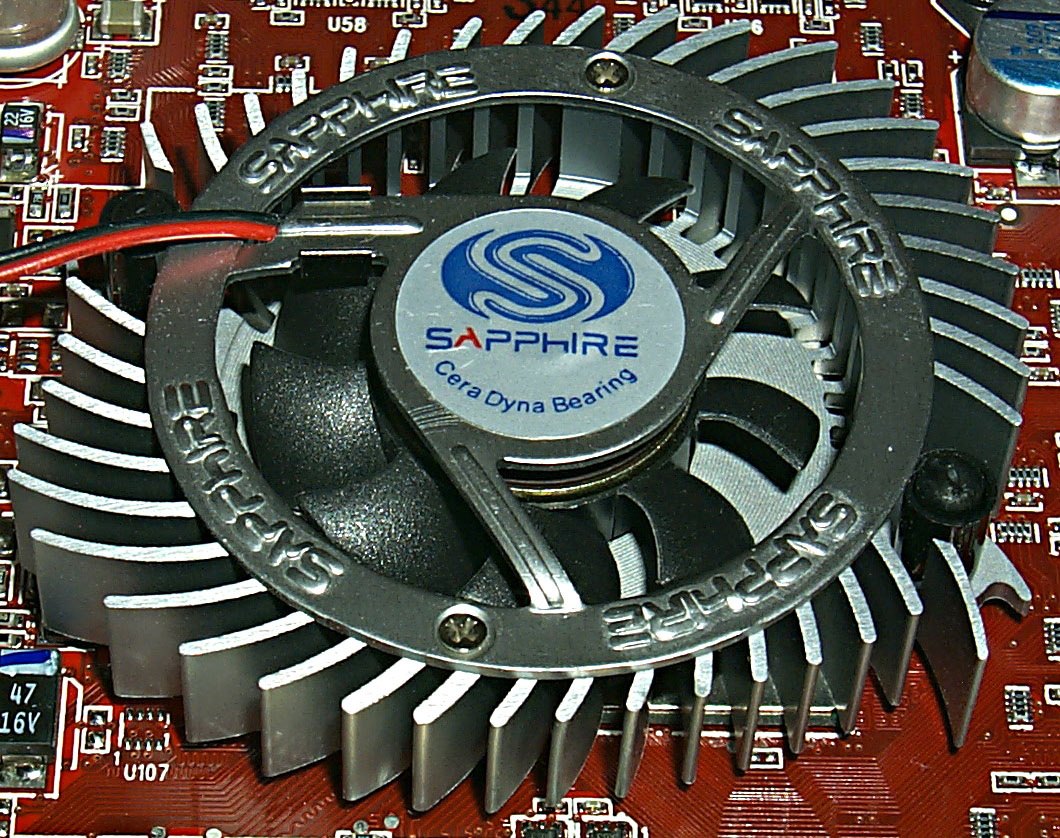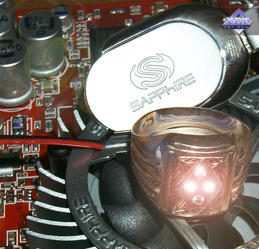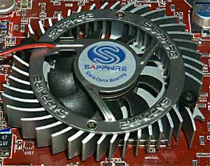 | Разработчики из Sapphire, несмотря на свою близость к ATI, все же решили как-то выделить свои продукты, прежде всего, изменением референс-кулера на свой собственный. Еще в обзоре линейки карт от этой компании мы обратили на это внимание. По своей конструкции радиатор схож с теми, что мы неоднократно видели на картах на базе GeForce4 Ti 4200 принцип выдувания горячего воздуха из центра на ребра радиатора. | ![]() |