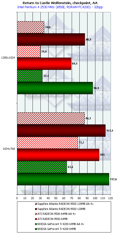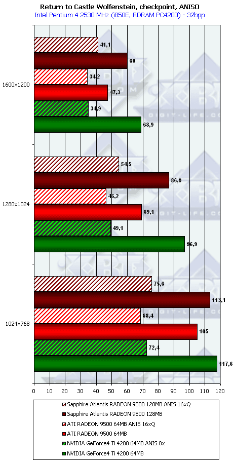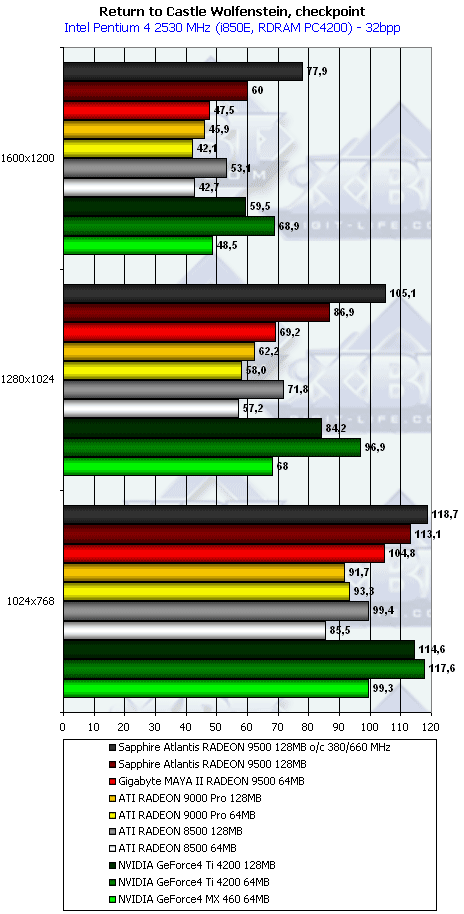 - Return to Castle Wolfenstein (MultiPlayer) (id Software/Activision) OpenGL, мультитекстурирование, Checkpoint-demo, настройки тестирования все на максимально возможном уровне, S3TC OFF, конфигурации можно скачать тут