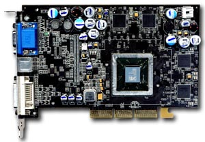 | Продукт имеет шину Эй-Джи-Пи Икс-Восемь, Сто двадцать восемь мегабайт по памяти объем, Которые мы в микросхемах Ди-Ди-Эр отважно носим, Аж 8 штук на Пи-Си-Би мы там найдем. А память та быстра  аж три и шесть наносекунд! Ее известный Хиникс в Би-Джи-Эй обертке изготовил. Тактуется на двести семьдесят отменных мегагерц, Пятьсот аж сорок Ди-Ди-Эр в итоге приготовил. А сам процессор затактован чуть повыше, Тут двести семьдесят и пять мы видим мегагерц, Для большинства игрушек  это выше крыши, Мы можем в играх задавать всем ботам перца… |  |