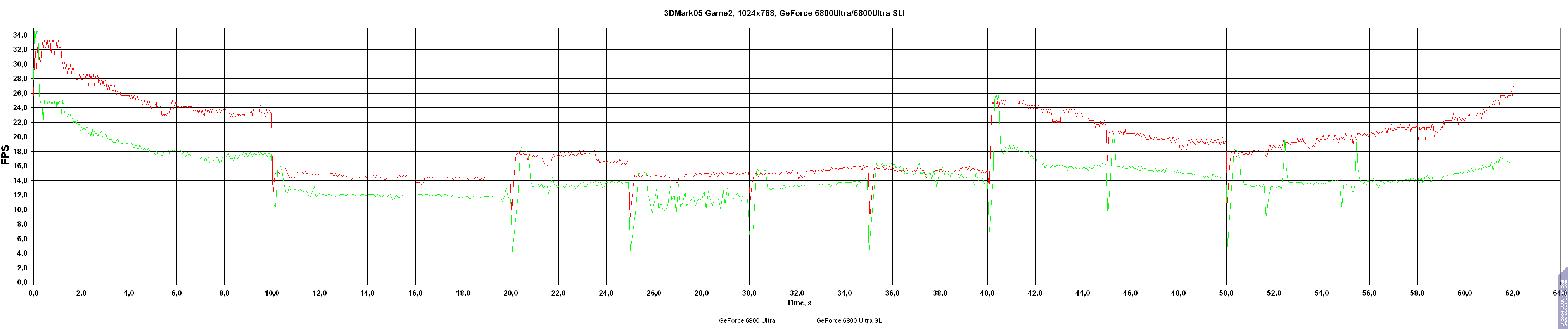 - Результаты тестов: 3DMark05 Game2 (с графиком FPS по времени)