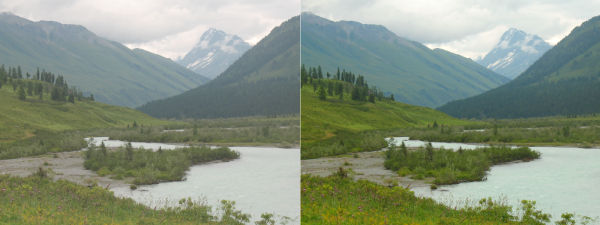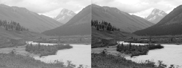 Динамическое улучшение контрастности довольно часто используется в бытовой технике, в телевизорах и видеоплеерах, оно может улучшить изображение с неоптимальной экспозицией (сочетание выдержки и диафрагмы). Для этого, после декодирования каждого кадра, анализируется его гистограмма, и если у кадра неудачная контрастность, гистограмма пересчитывается и применяется к изображению. Вот пример (слева - начальное изображение, справа - обработанное):