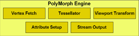 Новая архитектура NVIDIA использует несколько полиморфных движков (PolyMorph Engines) и блоков растеризации (Raster Engines), работающих параллельно. И сравнительно большое количество движков PolyMorph в GF114 обеспечивает высокую производительность тесселяции, а несколько растеризаторов быстро выполняют свою задачу по отбросу невидимых поверхностей и растеризации. Графический процессор, лежащий в основе GeForce GTX 560 Ti, имеет восемь движков PolyMorph и два растеризатора. А конкурирующий с ним Radeon HD 6870 имеет лишь один тесселятор и растеризатор, хотя и более эффективные, если их сравнивать один к одному.
