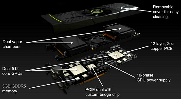 Подробности: двухчиповая видеокарта GeForce GTX 590