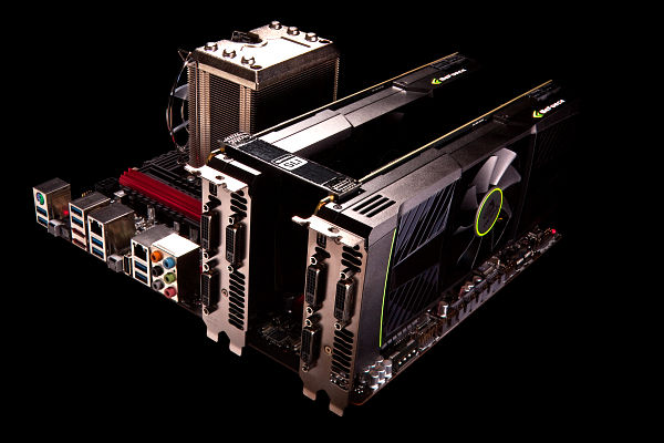 Так, одним из базовых требований является системная плата с достаточным расстоянием между слотами PCI-Express x16 — две платы должны быть установлены минимум через один слот расширения. Естественно, речь о референсном воздушном кулере, водяное охлаждение лишнего слота не потребует. Вполне логично, что в список сертифицированных системных плат уже вошли топовые модели для энтузиастов от известных производителей.