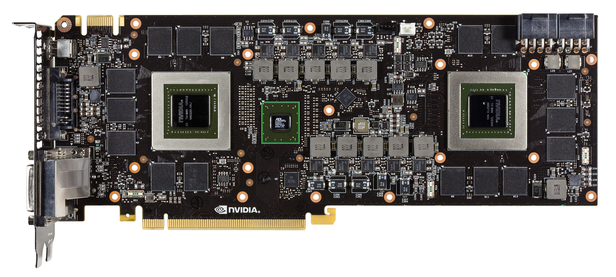 | GeForce GTX Titan Z | 2xGK110 | 2x(2880/240/48) | 705(876) | 1750(7000) | 2×6 GDDR5 | 2×336,4 (2×384) | 2×169 | 2×33,8 | 375 |