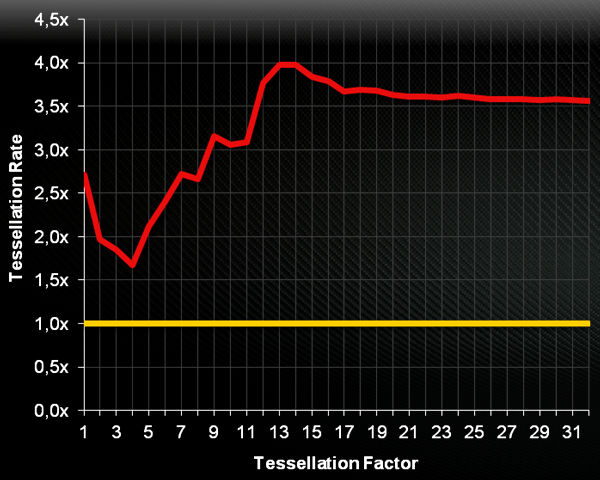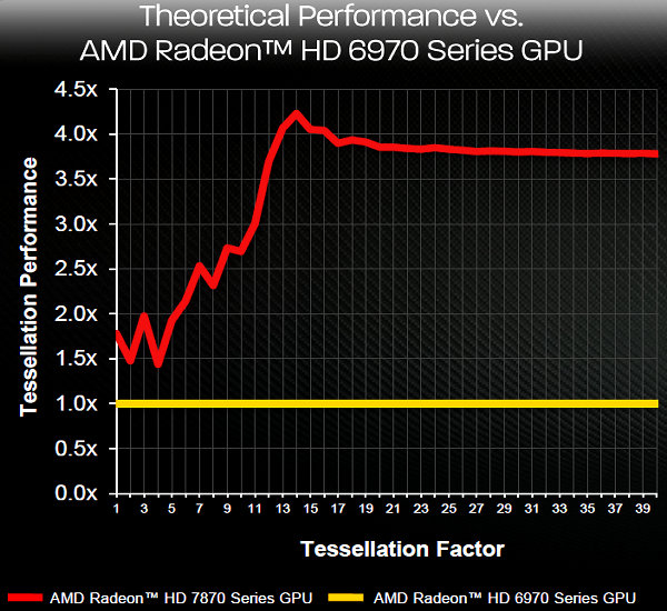 Нам осталось отметить довольно большой объём кэш-памяти второго уровня — целых 512 килобайт (сравните с 768 КБ у топового чипа — видимо, кэш L2 не занимает на чипе слишком много места), а также улучшения в геометрической производительности. Как и топовый чип, Cape Verde имеет тесселятор 9-го поколения, отличающийся многочисленными оптимизациями по буферизации и кэшированию, что позволяет заметно повысить производительность обработки геометрии, по сравнению с серией Radeon HD 6000.
