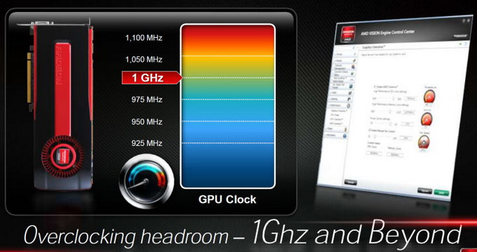 При подобном постоянном изменении частот, сторонние приложения вроде MSI Afterburner и GPU-Z будут показывать не мгновенные значения тактовой частоты, а средние за какой-то промежуток времени — так называемую «эффективную» частоту. Ещё одним интересным нововведением является то, что AMD открывает новые настройки PowerTune для сторонних приложений. Партнёры также могут устанавливать свои значения настроек PowerTune, что поможет при создании фабрично разогнанных моделей видеокарт и даст больше возможностей, не ограниченных референсными значениями от AMD. Правда, разные настройки PowerTune могут привести к тому, что видеокарты одной модели от разных производителей будут иметь не только отличающиеся тактовые частоты, но и алгоритм их изменения во времени, что затруднит сравнение в одинаковых условиях.