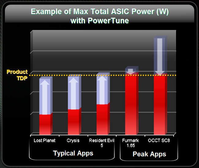 Ещё в далёком 2010 году компания AMD представила технологию PowerTune в своём чипе Cayman (серия AMD Radeon HD 6900). Этот GPU был первым, в котором появилось динамическое управление питанием, названное PowerTune. Оно позволило повысить максимальные тактовые частоты для типичных приложений, избежав слишком большого потребления энергии в специализированных тестах стабильности, вроде FurMark. Затем технология была применена и в двухчиповой модели AMD Radeon HD 6990, которая нуждалась в ней ещё больше по понятным причинам.