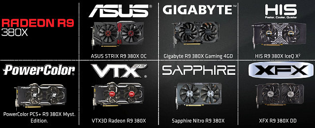 Пожалуй, причиной анонса видеокарты на основе полноценного чипа Antigua/Tonga стал тот факт, что у AMD оставался небольшой запас в виде заблокированных в R9 380 исполнительных устройств, и они решили слегка освежить свою линейку новой моделью — нужно же как-то напоминать о своём существовании во время, когда ничего действительно нового выпустить пока что нельзя, так как более совершенные техпроцессы ещё слишком сырые. Компания AMD решила разбить пару конкурентов GeForce GTX 970 и GTX 960, выпустив что-то среднее между ними, как они нередко делали подобное ранее. И представленная модель Radeon R9 380X продолжает такой подход, став одним из выгодных предложений в своей ценовой нише.