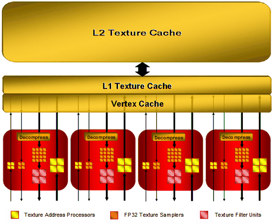 - 4 укрупненных текстурных блока, с поддержкой FP16 и FP32 компонент в текстурах