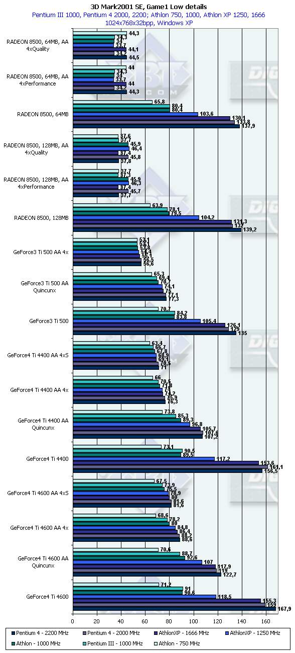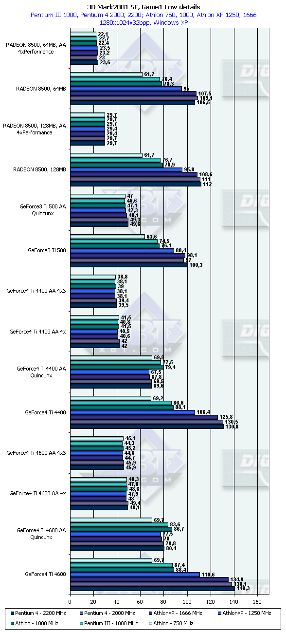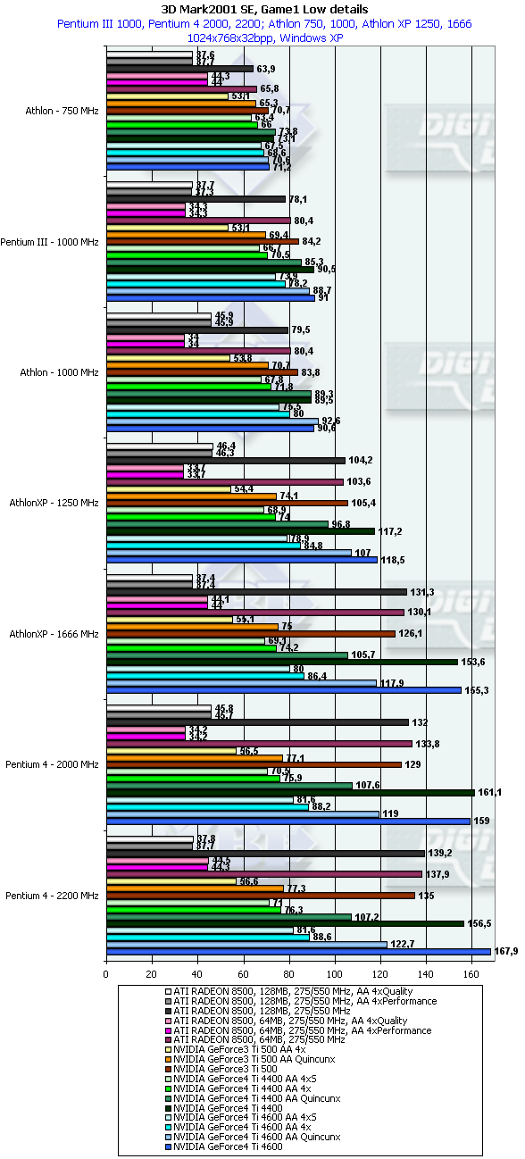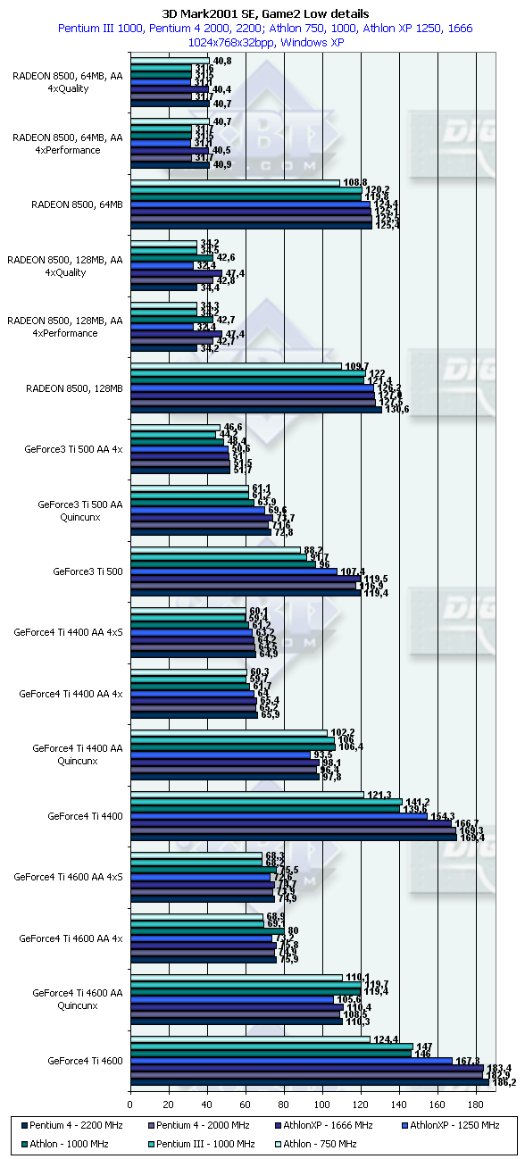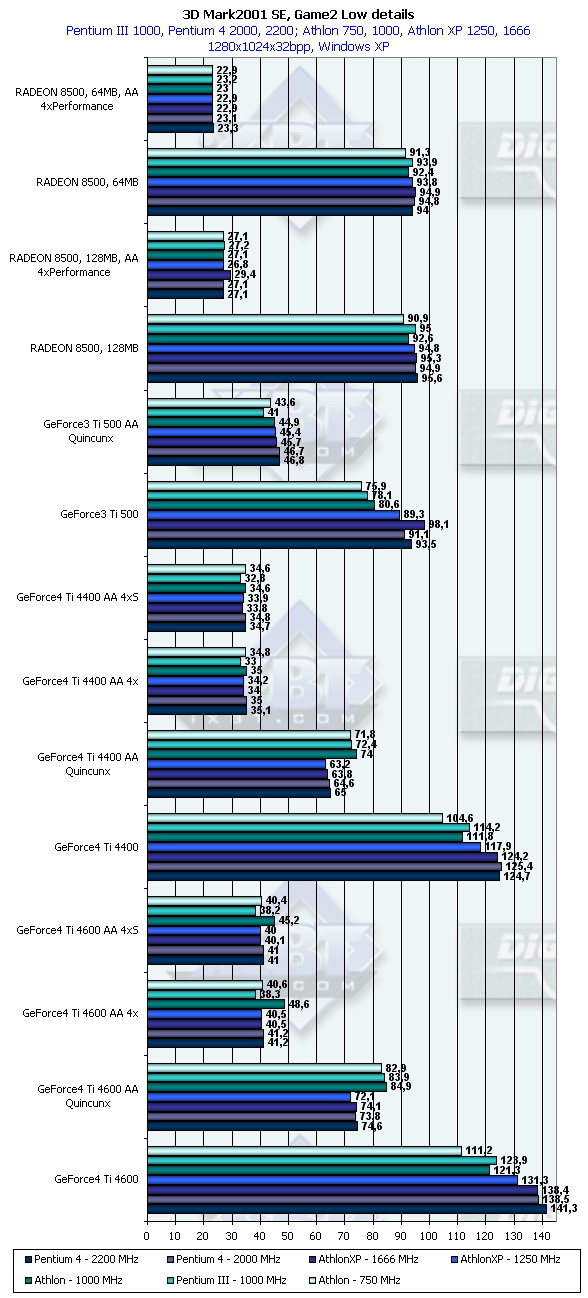 - Исследование работы GeForce4 Ti 4400/4600 при активном анти-алиасинге на примере 3DMark2001 SE Game1, Game2