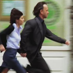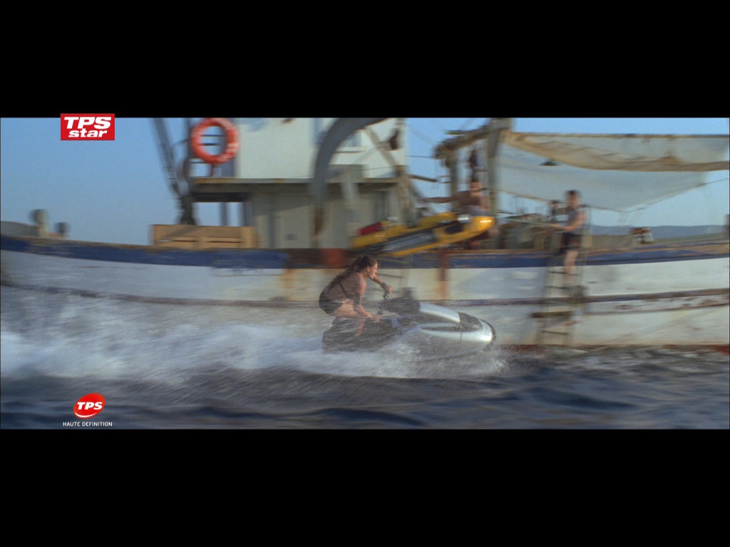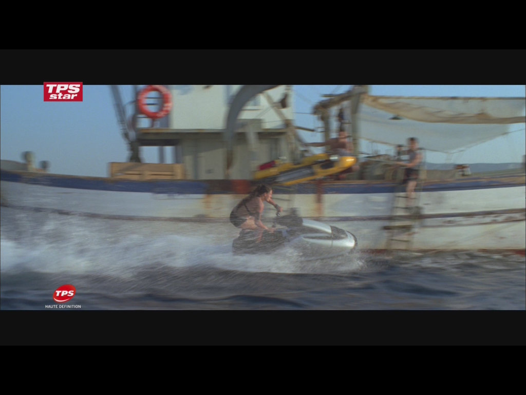На втором тестовом кадре этого ролика проблем с деинтерлейсингом не обнаружено, движения в нем мало, всё внимание обращаем на четкость и алиасинг логотипа в углу экрана. Лучше всего этот элемент выглядит на скриншоте, полученном на видеокарте ATI при помощи декодера CyberLink, затем идет NVIDIA, качество которой в обоих случаях почти идентичное, и хуже всего с задачей справился декодер ATI — налицо заметная зубчатость (алиасинг) темных линий логотипа. И опять хорошо видно отличие цветовых настроек у ATI и NVIDIA по умолчанию.