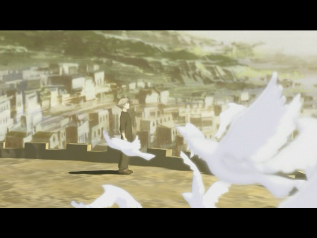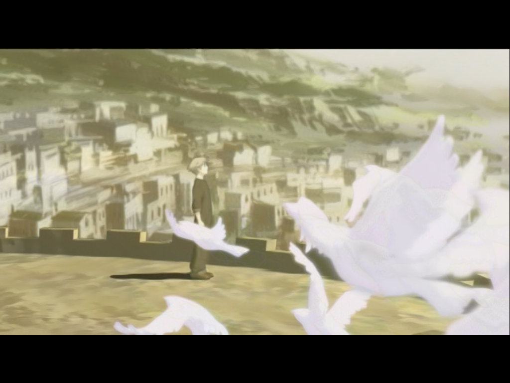 Опять все та же проблема ATI с CyberLink — деинтерлейсинг смешиванием полей, со своим декодером у них такого не наблюдается. Зато на крыле самой крупной птицы появились следы то ли предыдущего кадра, то ли другого поля. У NVIDIA на CyberLink качество нормальное, но у PureVideo лучше. По этому примеру можно было бы дать первое место за качество именно PureVideo, так как при его работе наблюдается лучшая четкость, достаточно посмотреть на горизонтальные линии верхнего края стены, тень персонажа и детали на поверхности земли. Надо лишь помнить, что за этот декодер придется платить отдельные деньги и в этом его главный недостаток.