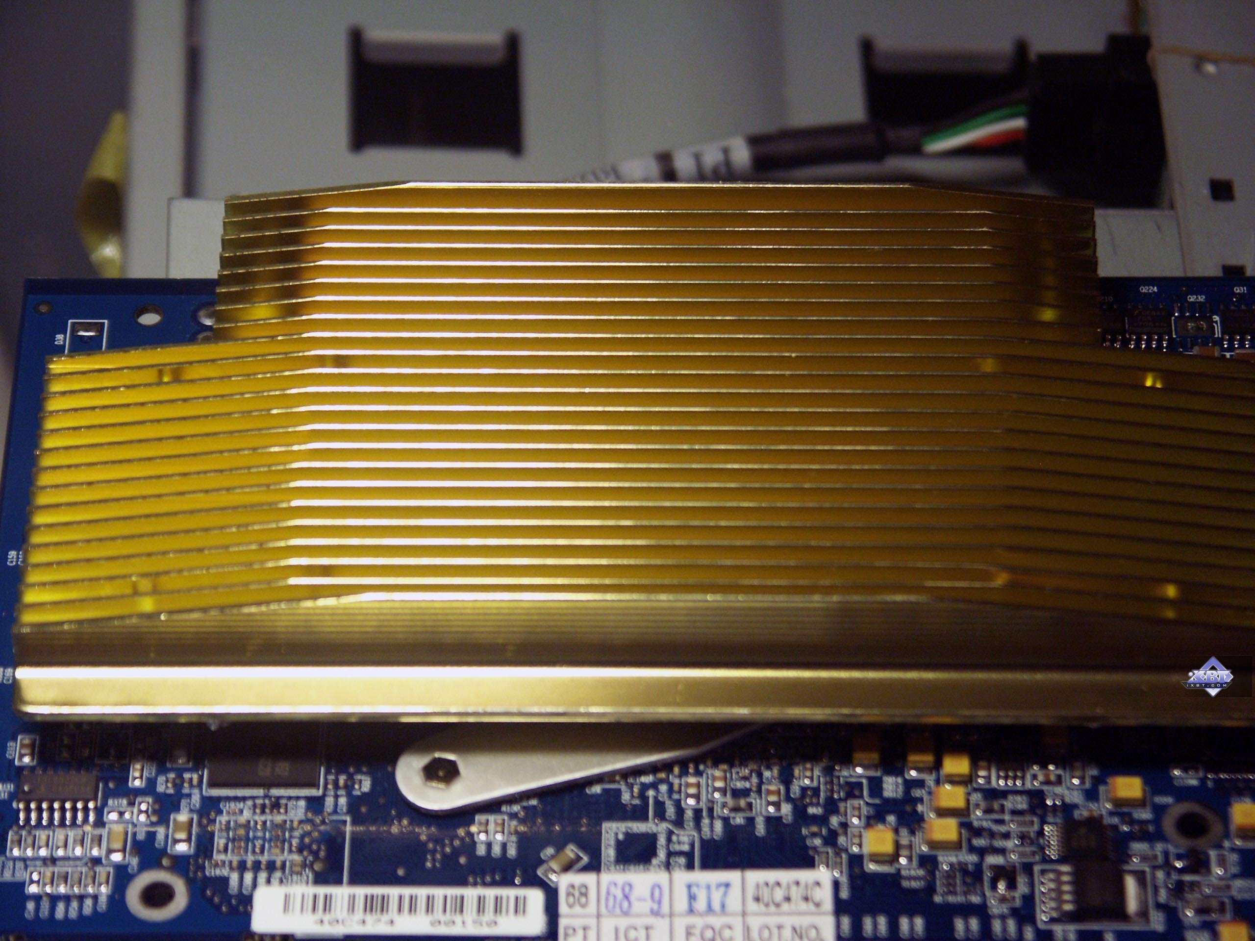 Несмотря на массивность системы охлаждения, лицевой радиатор достаточно тонкий, и потому соседние слоты рядом с видеокартой свободны. А вот задний радиатор заметно выступает, поэтому это надо учитывать, если рядом со слотом PCI-E находится чипсет с высоким радиатором, например.