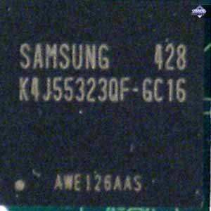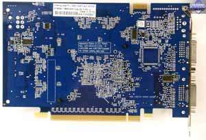 | Карта имеет 128 МБ памяти GDDR3 SDRAM, размещенной в четырех микросхемах на лицевой стороне PCB. Микросхемы памяти Samsung (GDDR3). Время выборки у микросхем памяти 1.6 ns, что соответствует частоте работы 625 (1250) МГц. | ![]() |