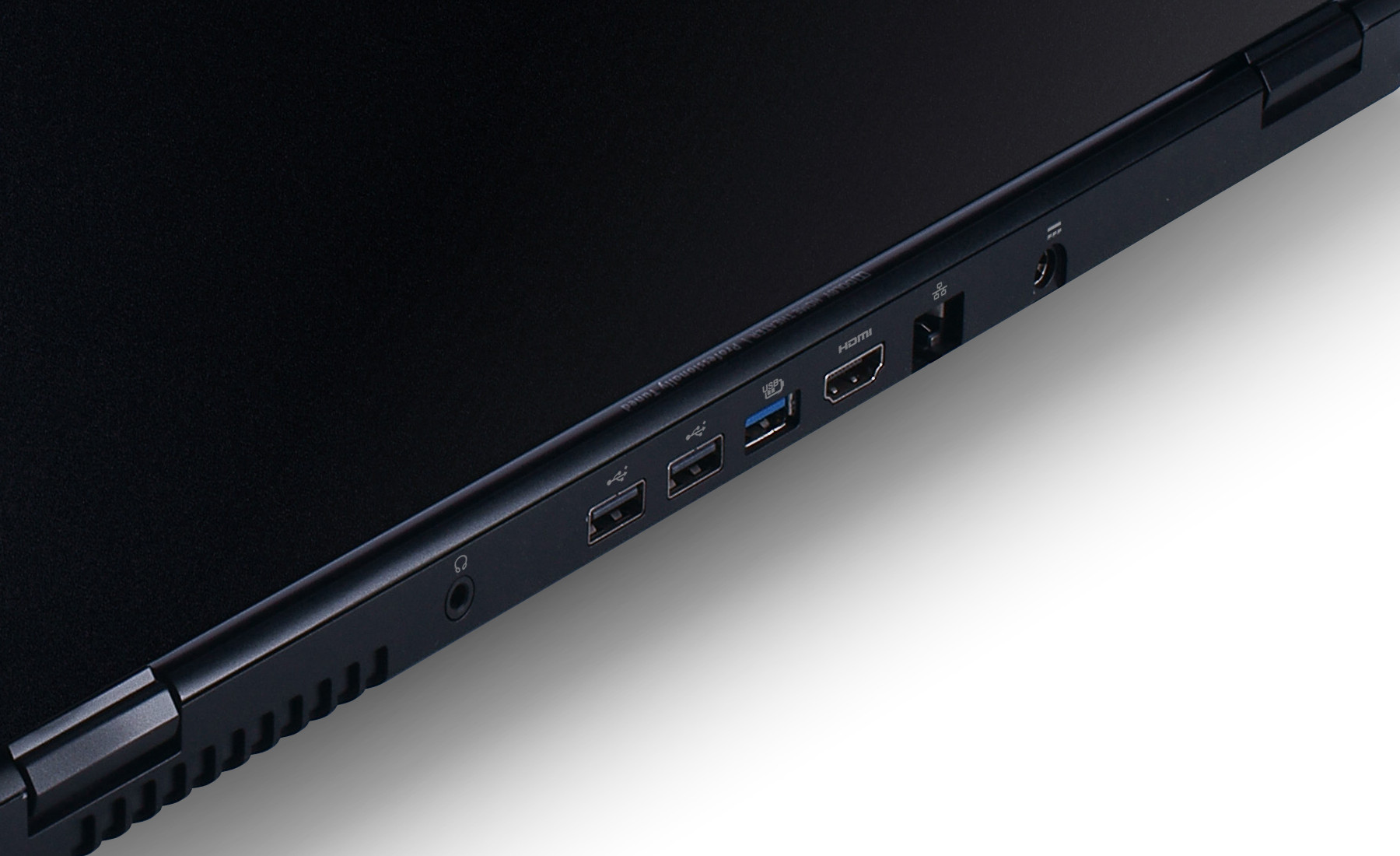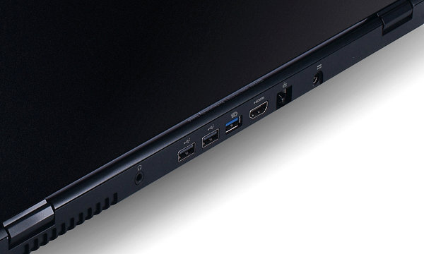 Сам по себе набор портов обычен, хотя и не балует разнообразием. Ноутбук имеет три USB-порта, два из которых версии 2.0, а один — 3.0. Кроме этого есть цифровой выход HDMI (более привычного аналогового VGA нет, хотя он уже и не нужен), разъёмы сетевого контроллера и питания, а также совмещённый аудиоразъём для наушников и микрофона.