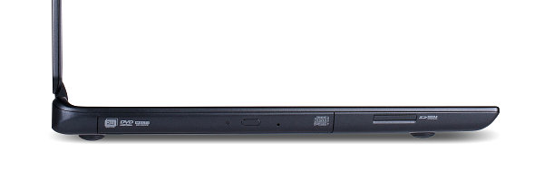 Но странности в дизайне ультрабука на этом не заканчиваются. В Acer Aspire Timeline Ultra M3 весьма непривычно расположены порты и кнопка включения. На правой грани ничего нет, на левой Acer разместила оптический DVD привод со светодиодным индикатором, показывающим состояние накопителя. Также там расположен и картовод форматов SD и MMC.