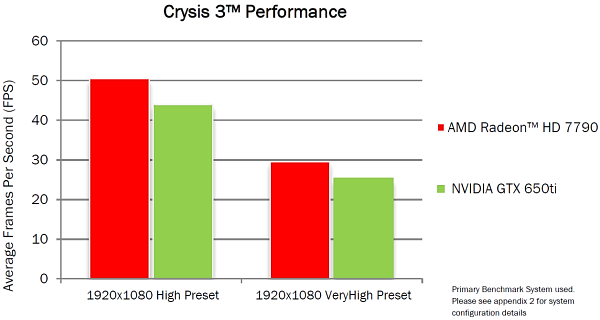 Компания AMD очень любит этот алгоритм, и он отвечает ей взаимностью — новая видеоплата Radeon явно быстрее, чем GTX 650 Ti в этой игре. Собственно, если брать оценку производительности от AMD, то их решение производительнее соответствующей по цене платы конкурента при рендеринге в разрешении Full HD с разными уровнями полноэкранного сглаживания и анизотропной фильтрации (для независимой оценки смотрите третью часть нашего сравнения):