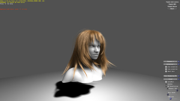 Следующий тест  демонстрационная программа от Nvidia под названием Realistic Character Hair. В ней используется не чисто синтетический код вычислительных или геометрических шейдеров, а комплекс геометрических и вычислительных шейдеров и тесселяции, поэтому он несколько ближе к реальным задачам, чем чистая синтетика первых двух тестов.