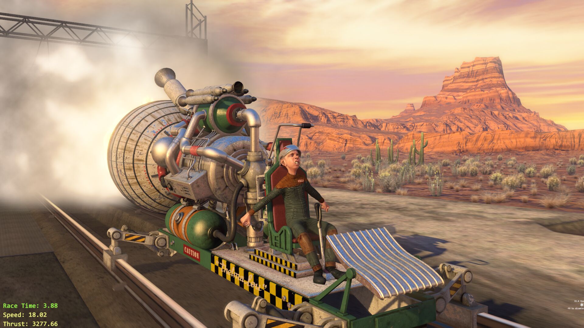 Из графических технологий, применённых в Supersonic Sled, не связанных с физическими эффектами, можно отметить качественную постобработку размытие в движении и применение тесселяции для поверхности земли. Причём, как вы можете видеть на скриншоте выше, тесселяция используется адаптивная.