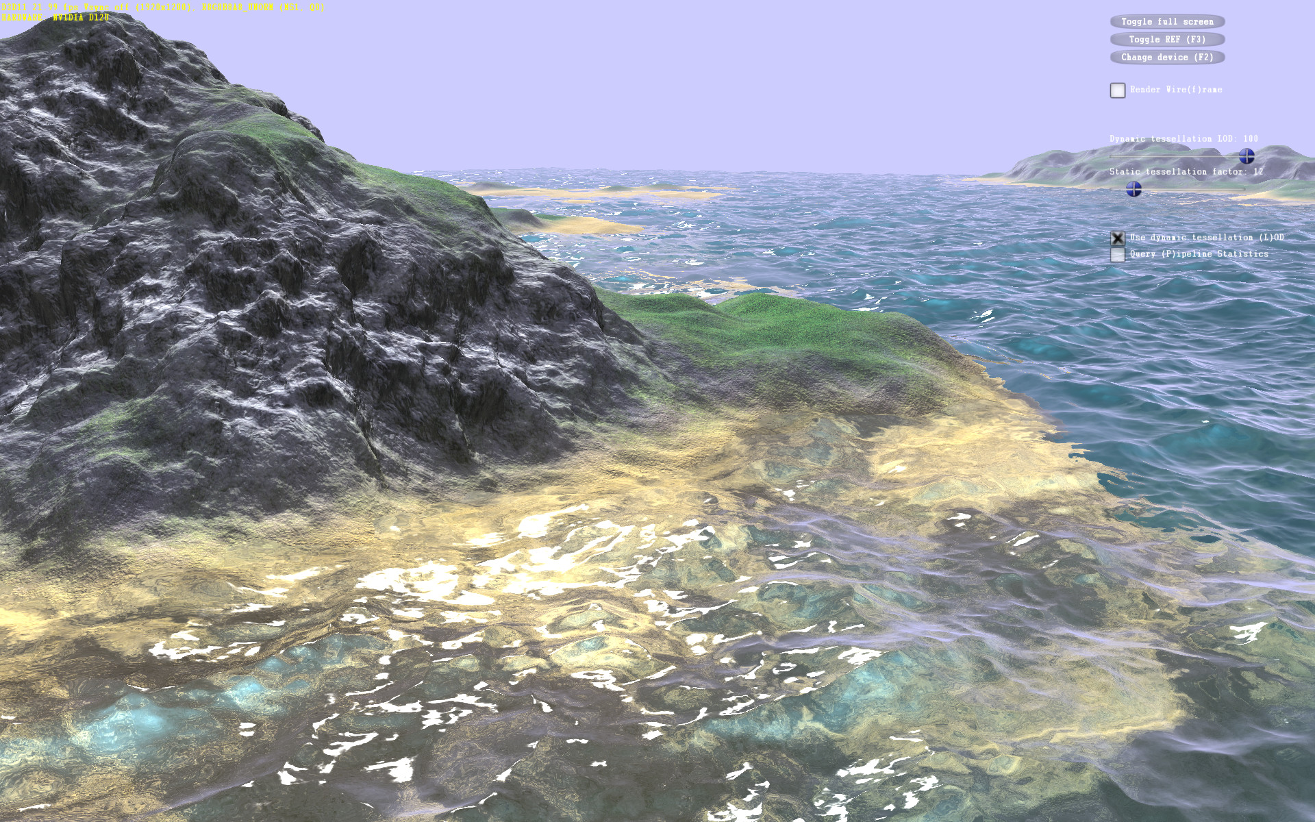 Нужно заметить, что шестикратная разница в этих столбиках не означает такой же разницы даже в мгновенной частоте кадров. Это производительность лишь части вызовов функций отрисовки, скорость в которых ограничена именно скоростью тесселяции.