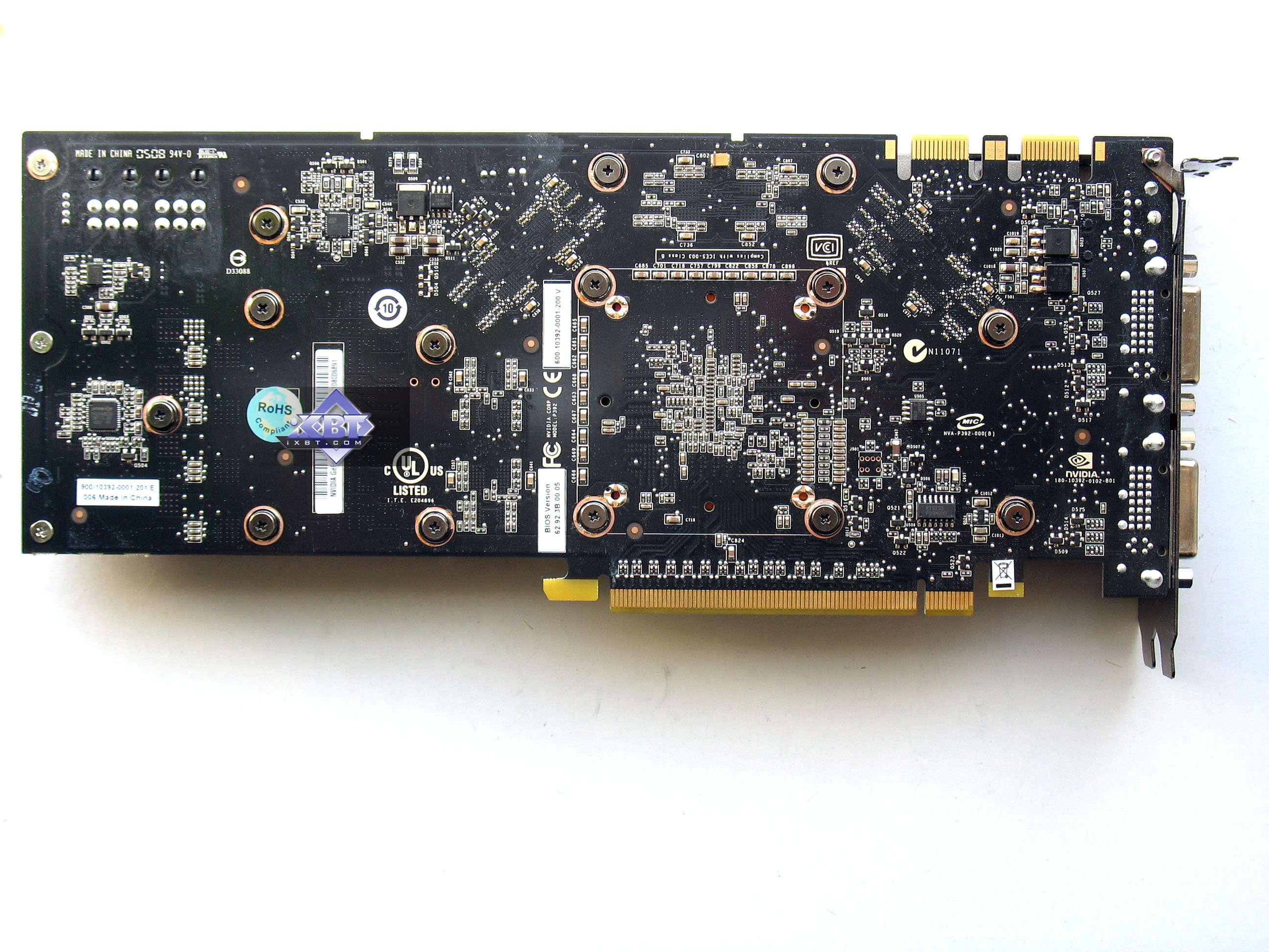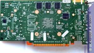 Еще можно также с уверенностью сказать, что данная PCB у GTS 450 имеет задел на будущее, и на ней разведена шина обмена с памятью 192 бит, просто не установлено 2 микросхемы памяти (в итоге 8 вместо 12), и таким путем получилась шина 128 бит и объем памяти 1024 мегабайт. Если карту укомплектовать всеми 12-ю микросхемами памяти, то получится шина 192 бит и объем памяти 1536 (или 768) мегабайт. Таким образом, будущие решения типа GTS 455 будут базироваться на той же PCB, иметь тот же GPU (в котором просто будут включены все три контроллера памяти и иные блоки) и скорее всего иметь ту же СО.