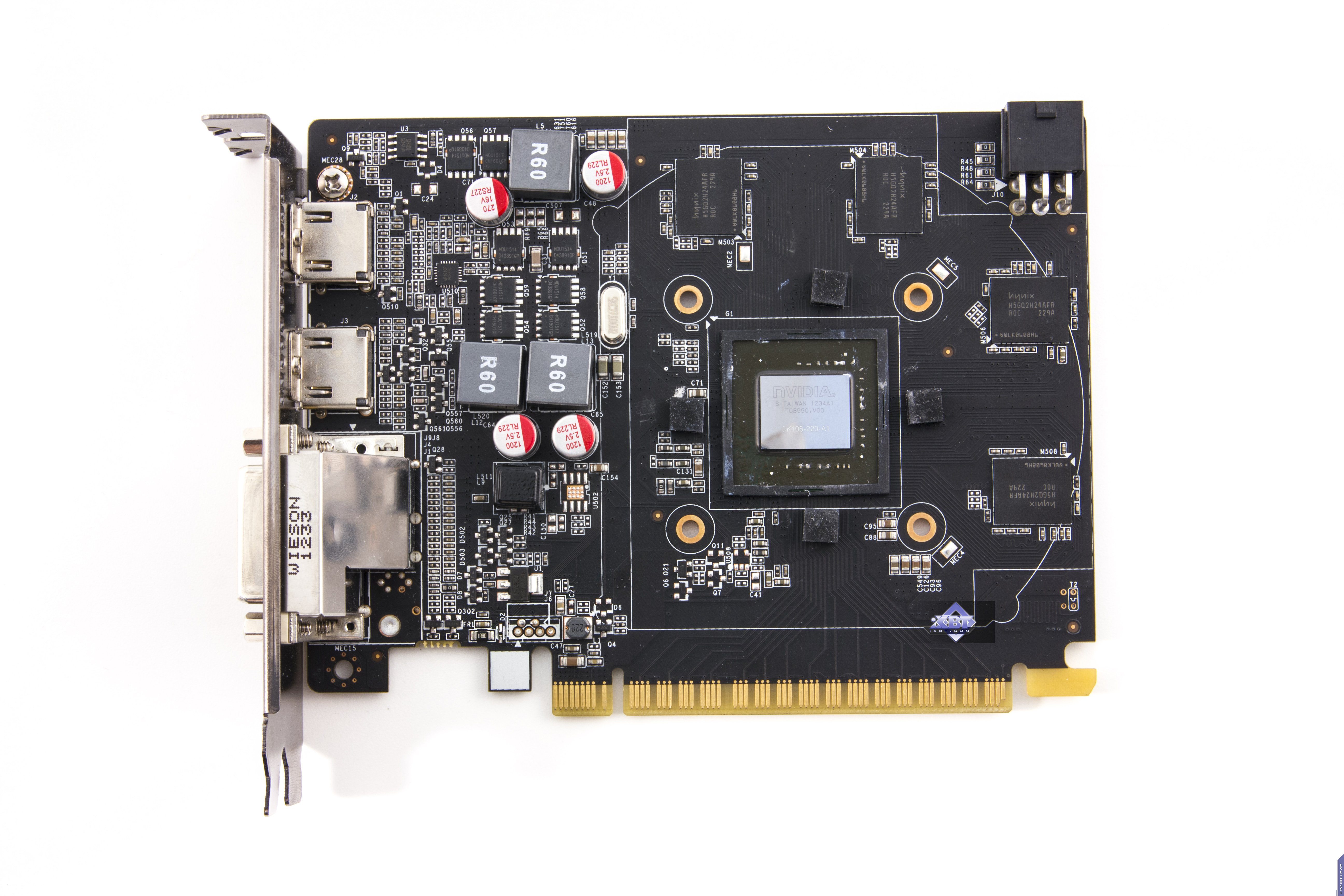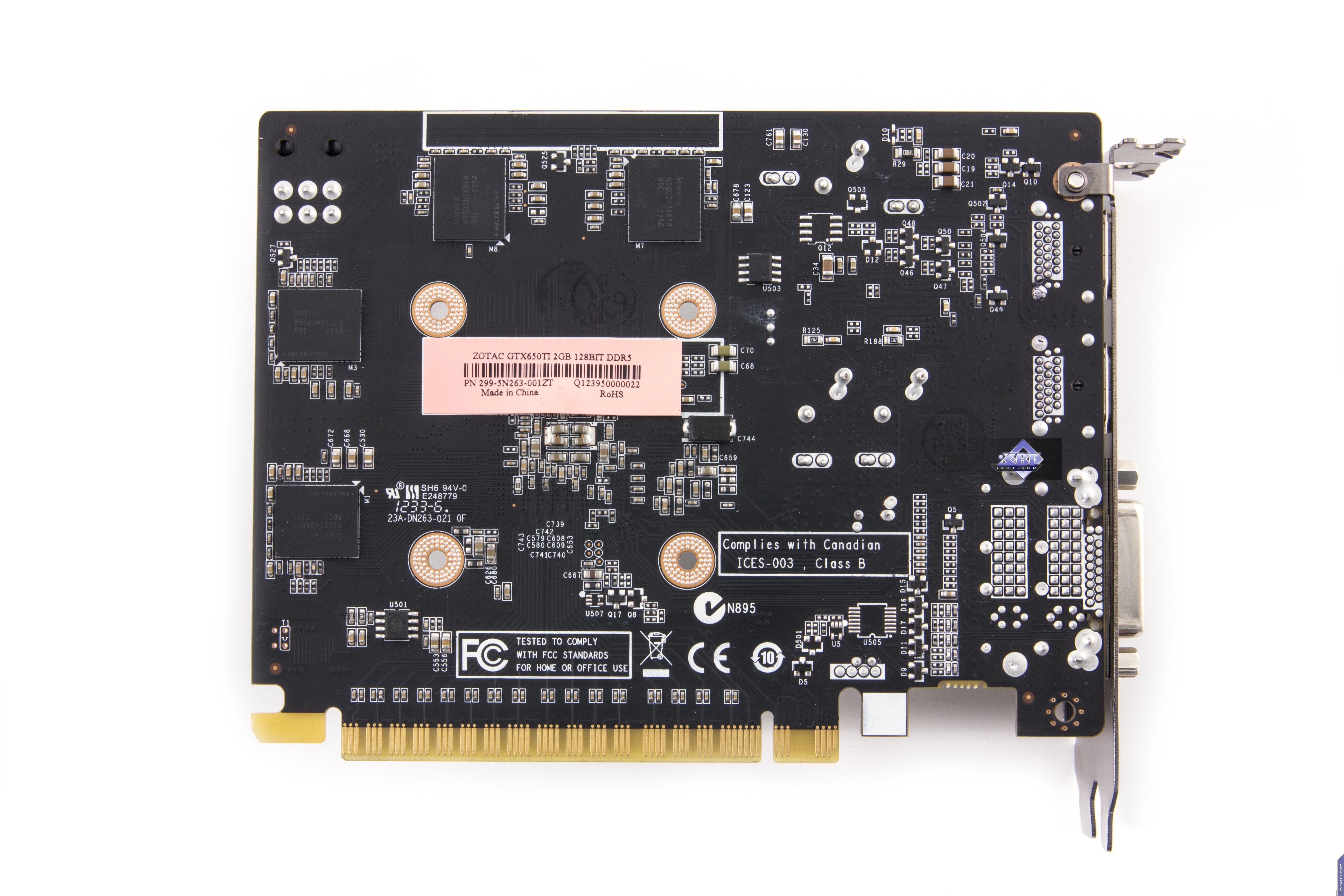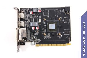 Инженеры использовали ядро, поддерживающее 192-битную шину обмена с памятью, для установки на более простую PCB с 128-битной шиной. Собственно, реально PCB очень простая и суперкомпактная. Отличия между дизайном от Zotac и референсным минимальны. По сути только в гнездах вывода: у Zotac их четыре, а у референс-карты — три. Остальные отличия незначительны.