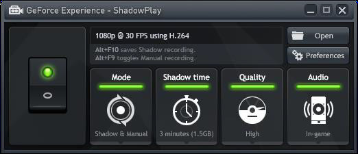 К примеру, вскоре планируется включить возможность записи игрового процесса, которая получила название ShadowPlay. Она позволяет автоматически записывать видеоролик последних минут игры (до 20 минут), что будет весьма полезно для тех, кто хочет поделиться своими игровыми успехами с друзьями. Великолепный снайперский выстрел в сетевом шутере, весёлые «баги» в играх — всё это вы точно не упустите с включенной возможностью записи игрового процесса — Nvidia ShadowPlay.