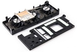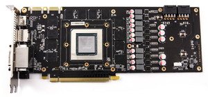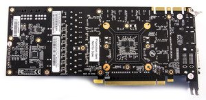 Видеокарта требует дополнительного питания в виде двух 8-контактных гнезд (что еще раз доказывает, что ускоритель расчитан на более высокое потребление, а значит — на более высокий разгон).