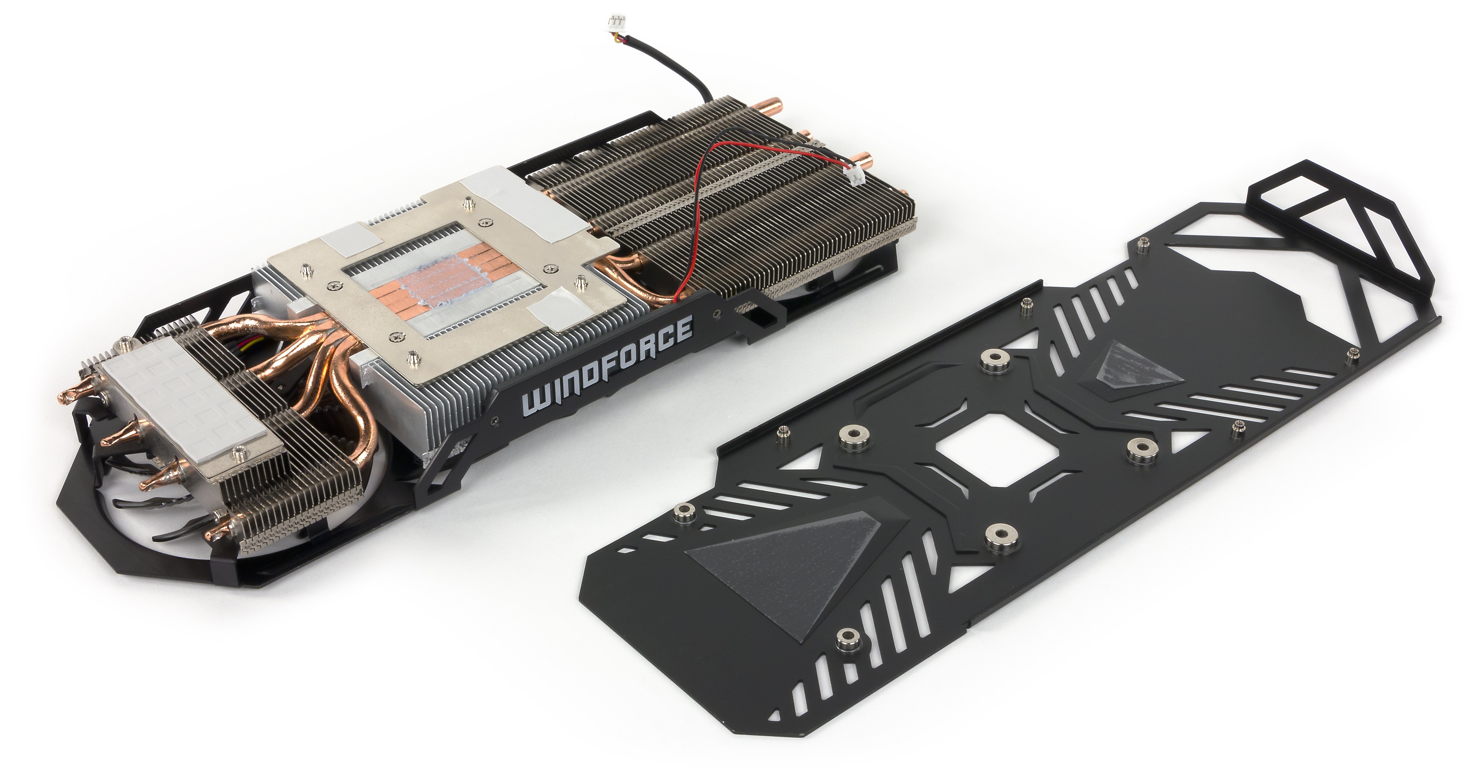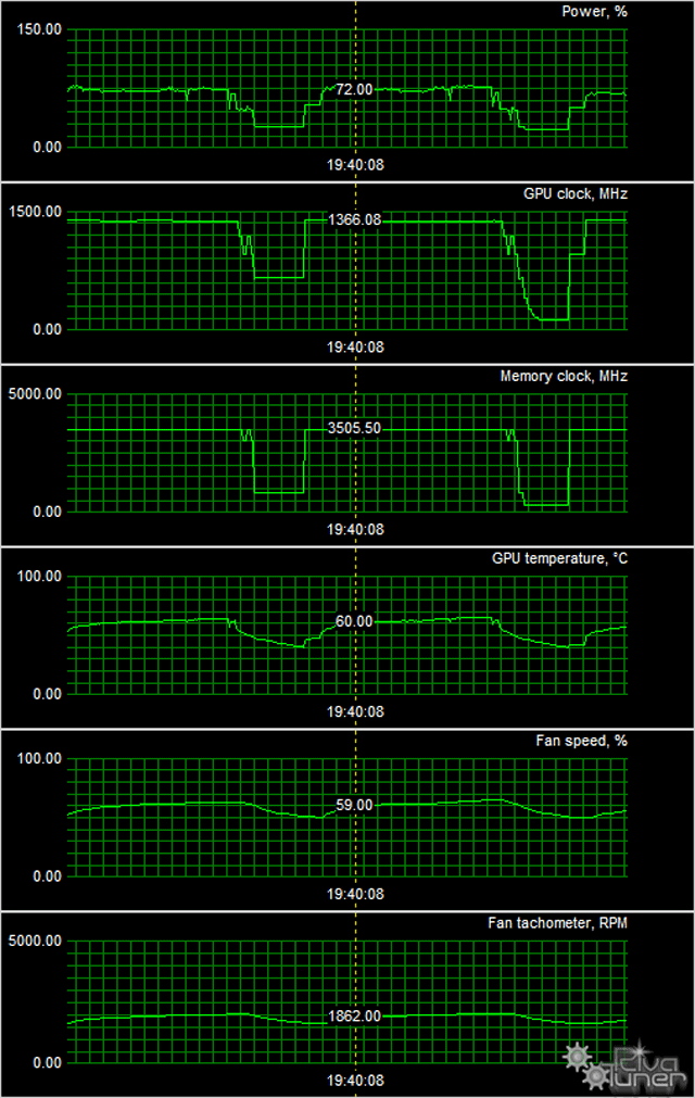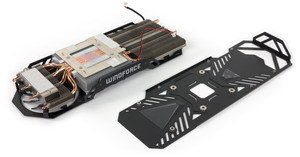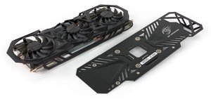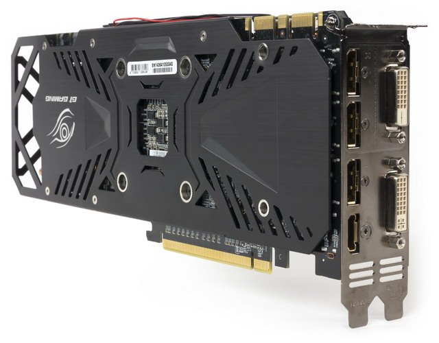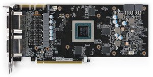 Схема питания ядра 5-фазная, 1-фазная у питания микросхем памяти. Это дает возможность довольно тонкого и серьезного оверклокинга. Видимо, поэтому дополнительное питание организовано по схеме 8+6 контактов, вместо 6+6 у референсной карты.