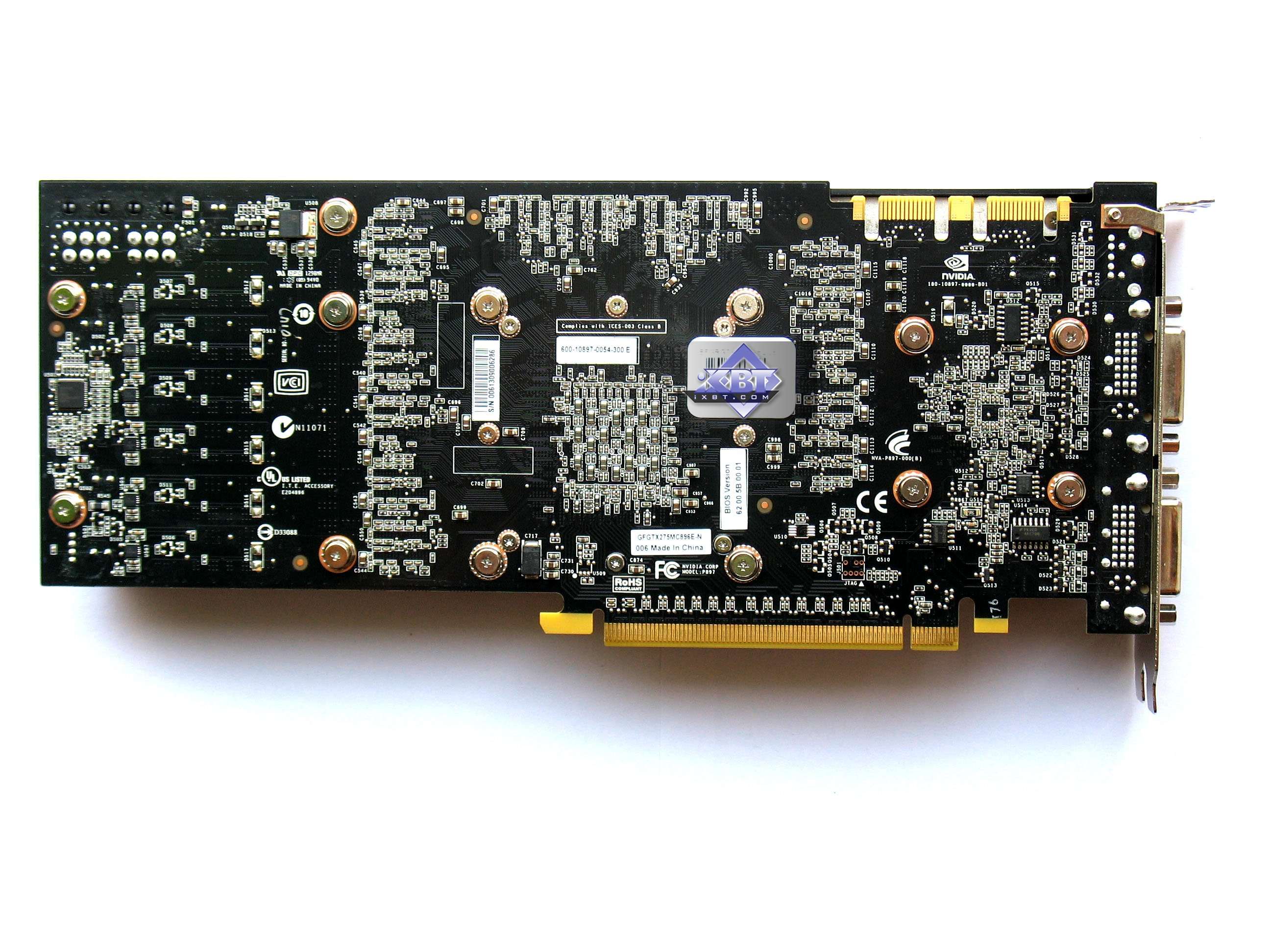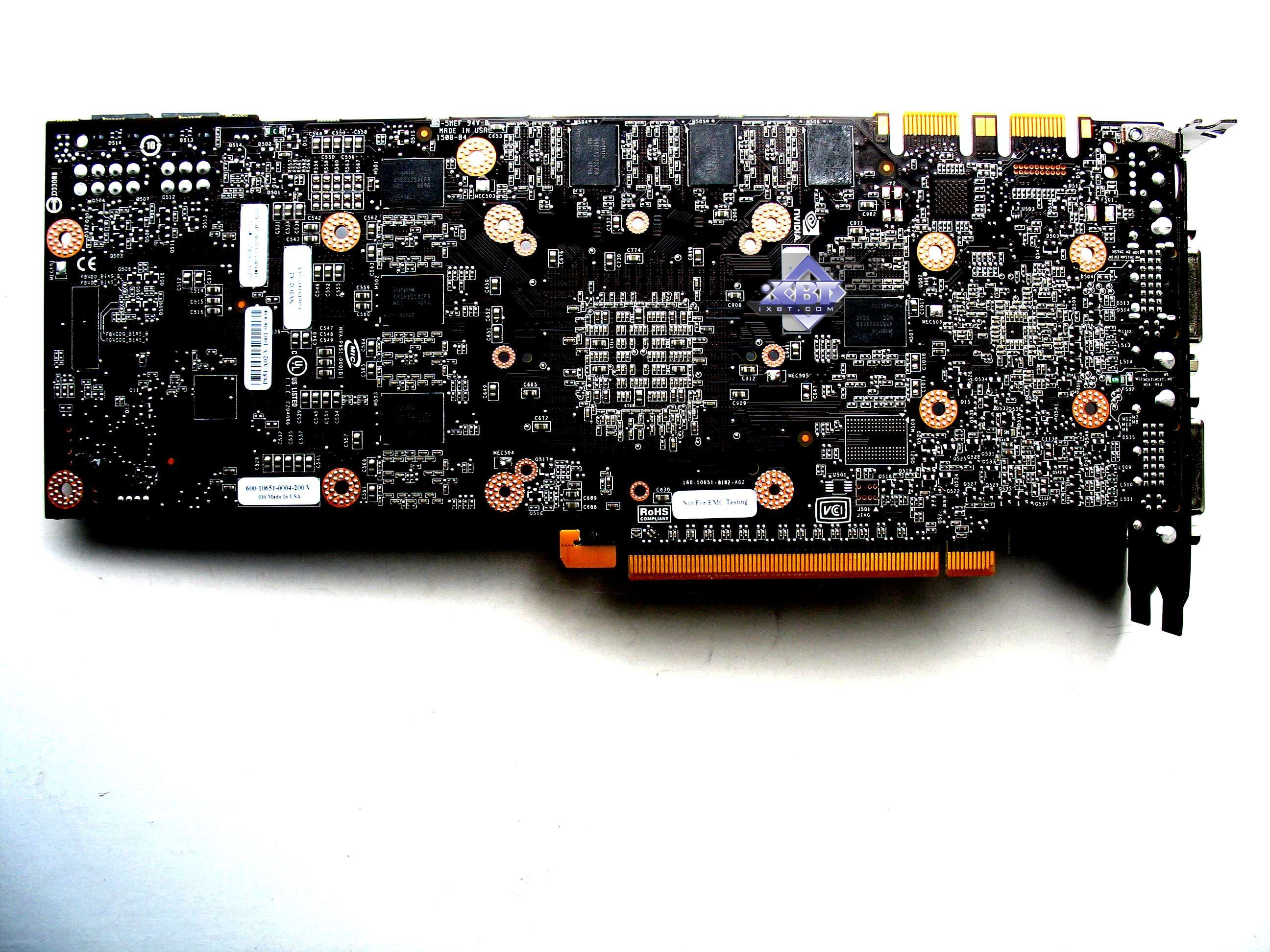 Однако, затем ради снижения себестоимости инженеры придумали свою собственную PCB для GTX 260, где разведена уже только 448 бит шина, а также имеются посадочные место только под 14 микросхем памяти. Именно такая PCB и была использована для GTX 275. Ведь отличие GTX 260 от 275 только в ядре: на первом установлено урезанное по числу процессоров, а на втором полноценное с 240 процессорами, как у GTX 285.