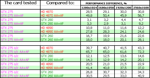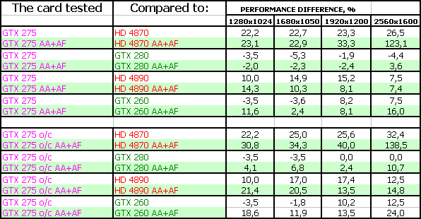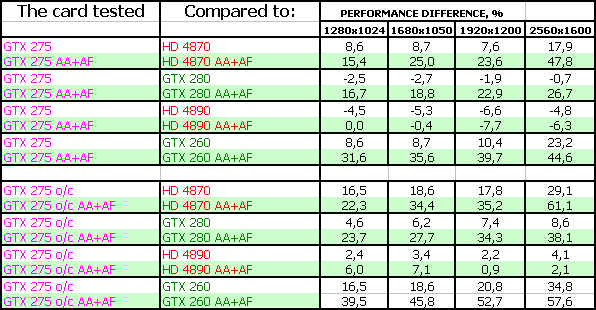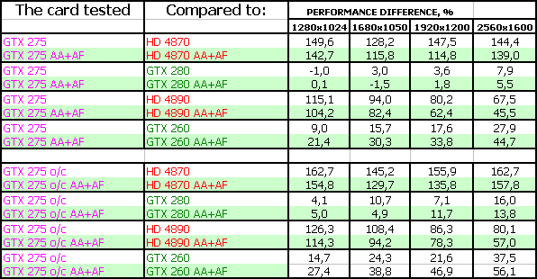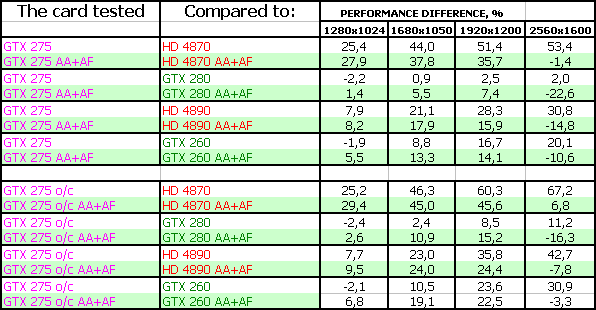 В таблицах в качестве GTX 275 o/c представлены результаты тестов карты от Zotac.